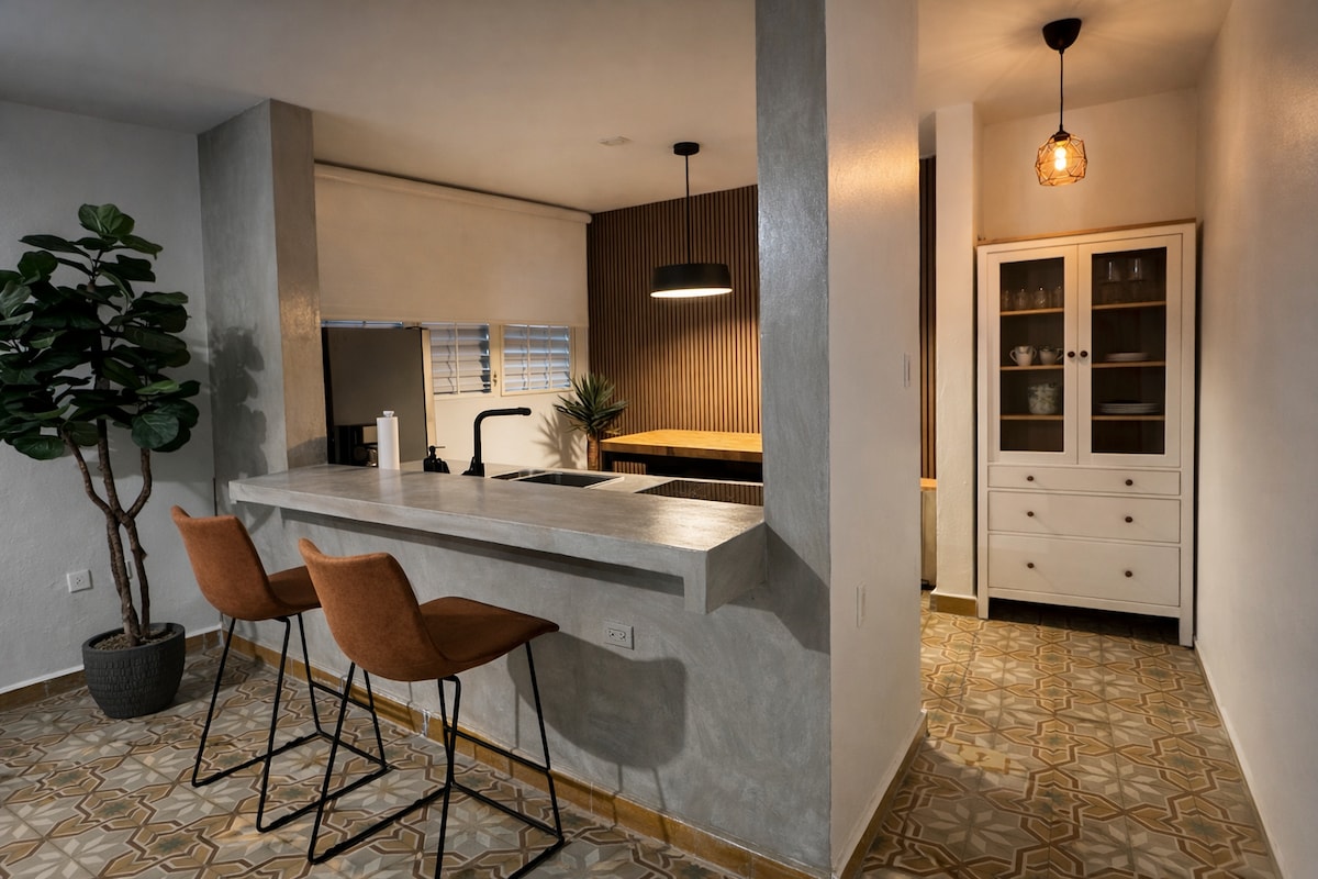 ¡Recién renovado 1BR a solo 6 minutos de la playa! Disfruta de una cocina elegante, un baño moderno y una decoración elegante con la comodidad de un acceso seguro al edificio. Camina a restaurantes, bares y tiendas, o toma un viaje rápido a Condado y el Viejo San Juan. Perfecto para una escapada romántica o una estancia de trabajo desde el paraíso. Reserva ahora y vive lo mejor de San Juan