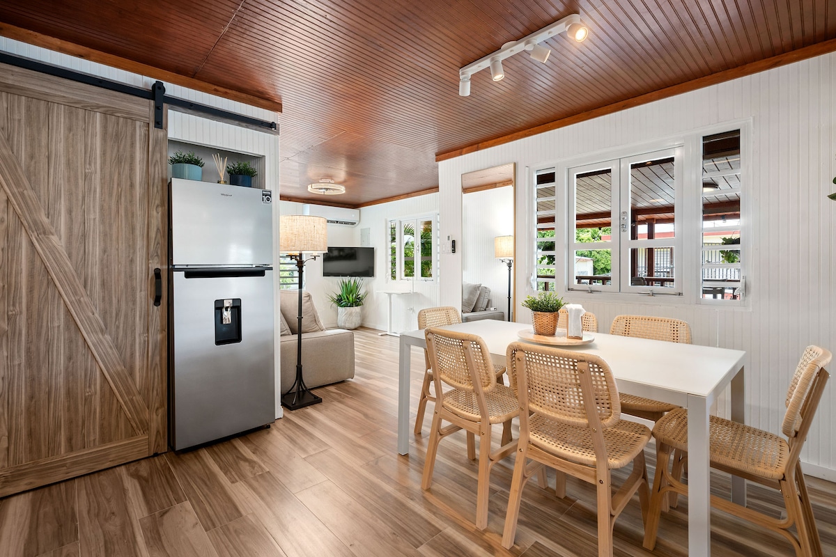 Disfruta de una estancia acogedora en nuestra casa de 1 dormitorio renovada, a solo 5 minutos a pie de Ocean Park Beach y a media manzana de la vibrante Calle Loíza. Disfruta de aparcamiento cerrado gratuito, una cocina moderna, lavadora-secadora, aire acondicionado, ventiladores de techo y un espacio de trabajo dedicado. Con dos televisores, excelente internet y artículos esenciales de playa incluidos, tendrás todo lo que necesitas. Sumérgete en la cultura local y explora cómodamente las atracciones cercanas. Si no quieres alquilar un coche, puedes ir andando o usar Uber.