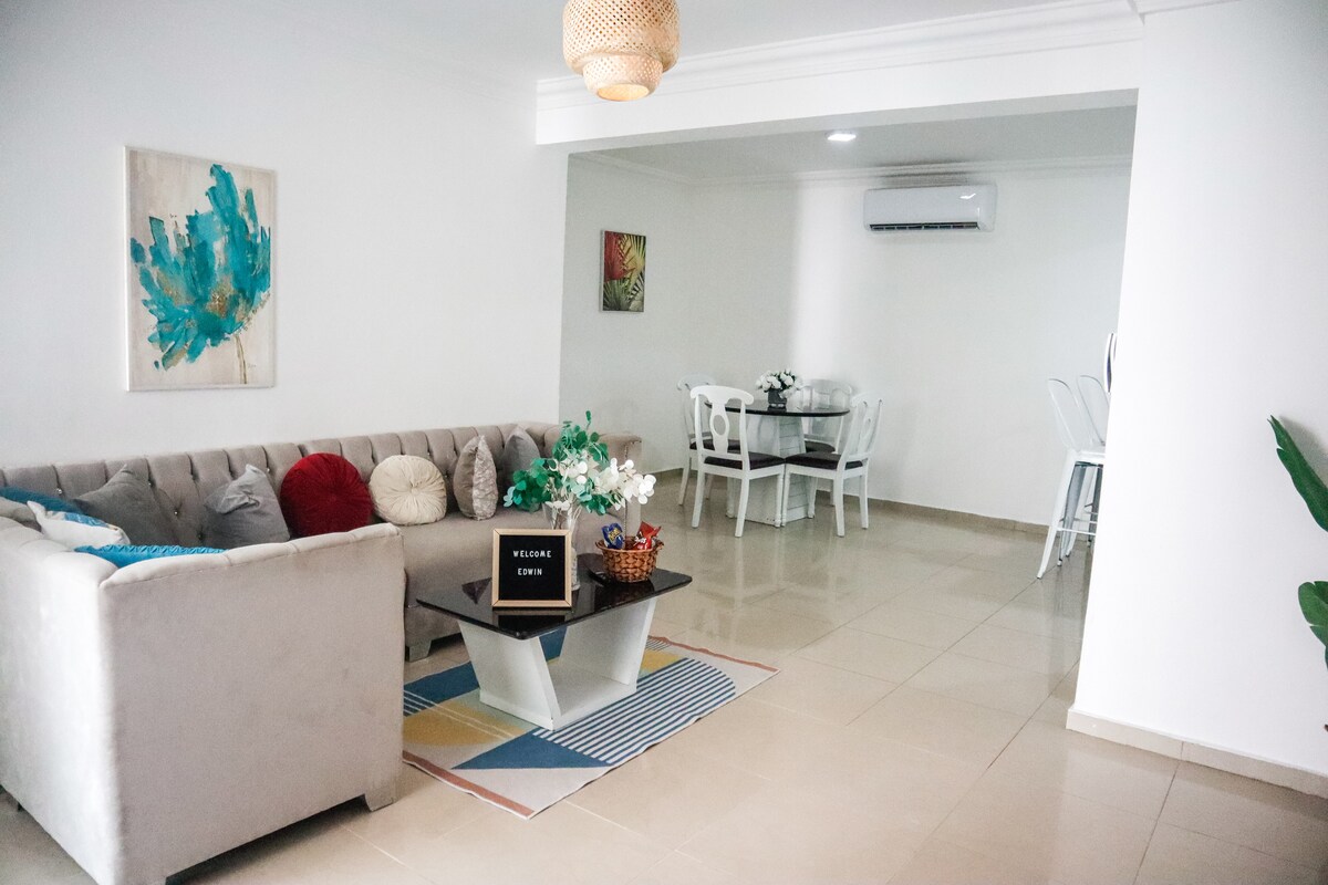 ¿Buscas un apartamento en Puerto Plata? Echa un vistazo a este moderno y minimalista condominio de 3 dormitorios y 2 baños. ¡Toma un Presidente y camina hasta la playa! El apartamento tiene una ubicación céntrica de todo lo que ofrece Puerto Plata. A solo 1 minuto del único McDonald 's de la costa norte. A 2 minutos en coche de los centros comerciales de Jumbo y La Sirena, a 18 minutos en auto del aeropuerto de Sosua Beach/Puerto Plata (POP). Estamos ubicados a unos 10 minutos en auto de los puertos de cruceros.