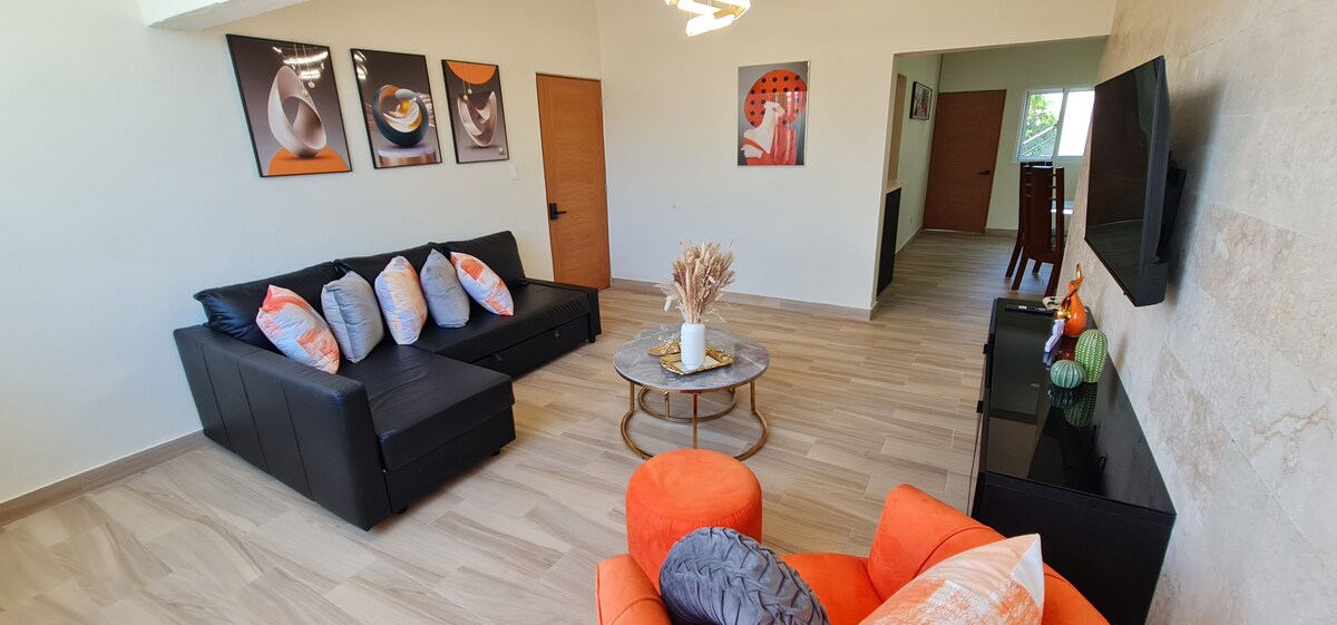 Apartamento a estrenar que te ofrece acceso exclusivo a un paraíso privado en la azotea con vistas panorámicas a las colinas de Puerto Plata desde nuestro Picuzzy. Sumérgete en la relajación en la piscina prístina, una joya oculta para nuestros huéspedes, y la soleada playa Dorada está a 5 minutos. En el interior, descubrirás tres espaciosos dormitorios, cada uno equipado con aire acondicionado refrescante para garantizar tu comodidad. La amplia sala de estar es tu acogedor refugio para disfrutar de memorables noches de cine y tiempo de calidad con tus seres queridos.