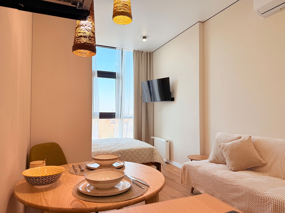 Los apartamentos Riviera Sea son apartamentos modernos y acogedores de 44 m² en la residencia Avtorsky, a pocos minutos del mar y del centro comercial Riviera. Autonomía completa: la energía de respaldo garantiza una luz constante, internet y el funcionamiento del equipo, sin interrupciones ni preocupaciones innecesarias. La caldera de gas y la estufa proporcionan agua caliente y calefacción en cualquier situación. Cocina equipada, dormitorio cómodo, aire acondicionado, lavadora y lavavajillas. Hemos pensado en todo para que tu estancia sea tranquila y cómoda.🌿