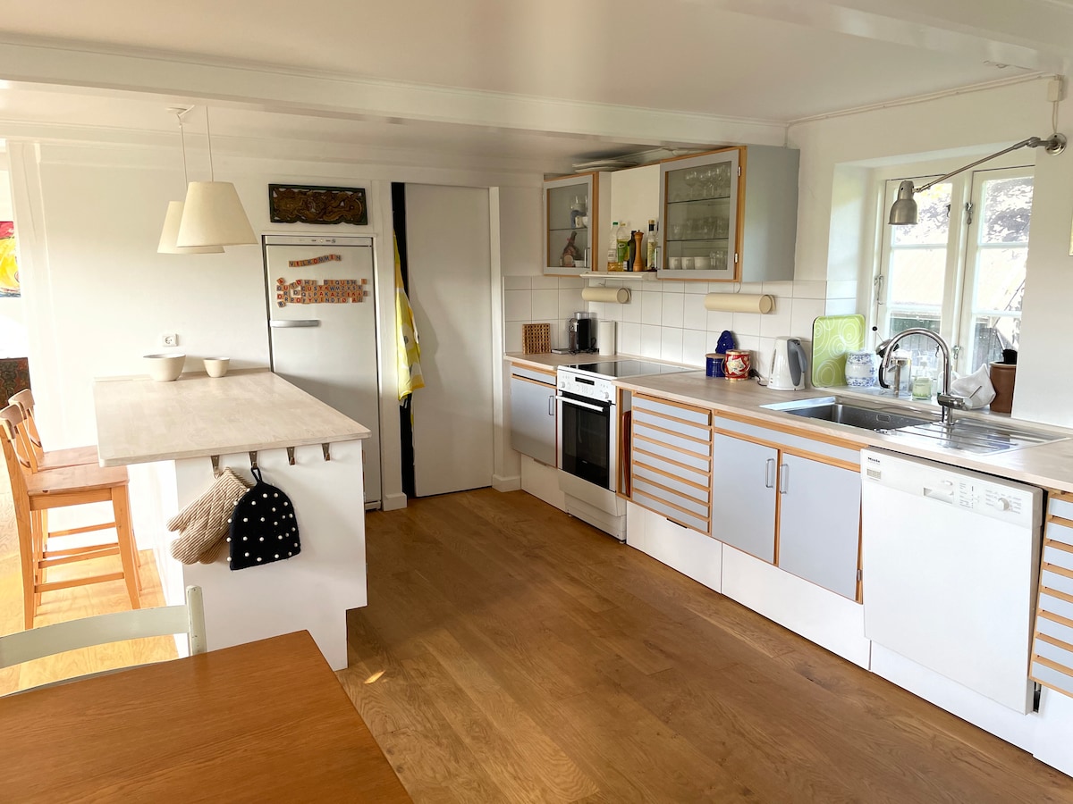 Casa de campo recientemente renovada de 131 m2, en un pequeño camino de grava cerrado en una tranquila zona de cabaña. Gran parcela casi completamente cerrada y aislada con sol todo el día. Posibilidad de juegos de pelota, croquet, etc. La casa tiene una maravillosa sala grande con mucha luz y salida a la granja solar. La sala de estar está directamente conectada con el comedor y la cocina. Aquí hay espacio para todos, ya sea que quieras poner un rompecabezas o leer, jugar o ver la televisión. Las dos habitaciones se encuentran en su propio pasillo de distribución con puertas correderas a la granja solar.
