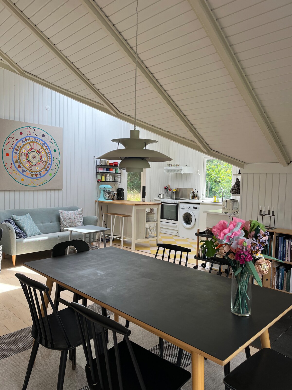 Cama Nyrup y cocina en un entorno artístico