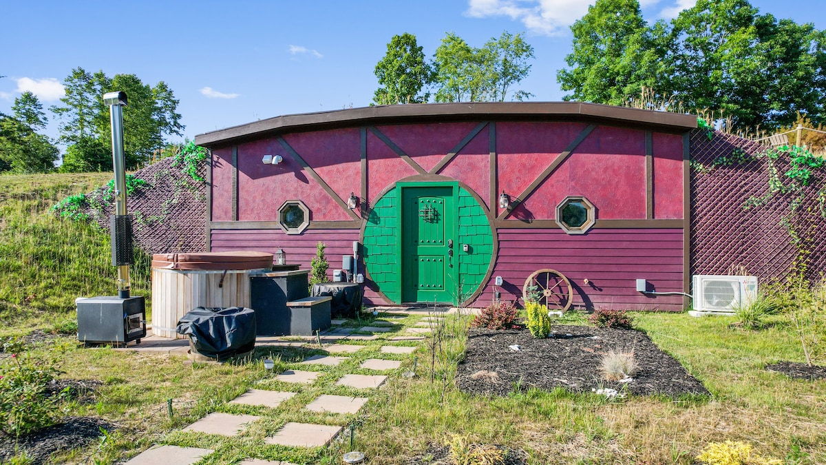 Imagina... tu propia escapada mágica de cuento de hadas inspirada en el hobbit con vistas panorámicas de la naturaleza. Se admiten mascotas. A 3 millas de Hocking Hills State Park Ash Cave. Toda la belleza, la naturaleza y el encanto caprichoso. La cápsula de sauna en el lugar pregunta sobre tu sesión de sauna de cortesía. Cama tamaño queen de lujo, chimenea interior, baño con acabados increíbles y ducha de efecto lluvia de lujo, cocina totalmente equipada. Jacuzzi, barbacoa, chimenea en el lugar. A poca distancia en auto de Ash Cave, Cedar Falls, Old Man 's Cave, bodega, actividades al aire libre, etc.