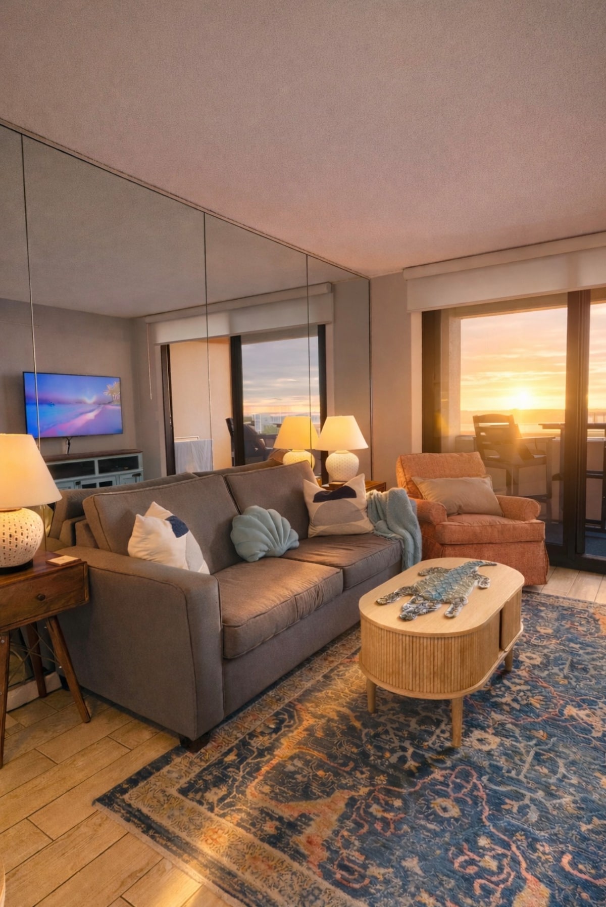 Hermoso condominio frente a la playa en el séptimo piso en Pelican Beach Resort con amplias vistas al golfo desde la sala de estar, cocina, comedor y balcón privado. A los huéspedes les encanta el encanto costero y el piso de baldosas con vistas a la madera en todas partes. Observa delfines desde el balcón por la mañana y disfruta de impresionantes puestas de sol por la tarde. Cuenta con una cocina totalmente actualizada, muebles elegantes, televisores inteligentes con Netflix, wifi de alta velocidad y sillas de playa con sombrilla almacenada en la unidad. ¡Un verdadero favorito de los huéspedes!