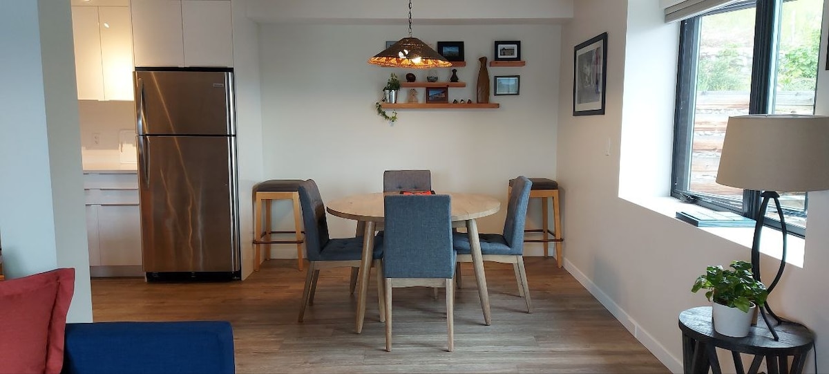 En el centro de la región vinícola. Justo encima del agua con una vista impresionante del lago Okanagan. Estamos ubicados a solo 5 minutos en coche de algunas de las bodegas más impresionantes y exquisitas del hermoso Okanagan. El centro de Kelowna está a solo 10 minutos en coche para disfrutar de algunos restaurantes increíbles, tiendas y vida nocturna. Ten en cuenta que tenemos niños pequeños que viven encima de la suite. Es posible que escuches algunos golpecitos que comienzan por la mañana.