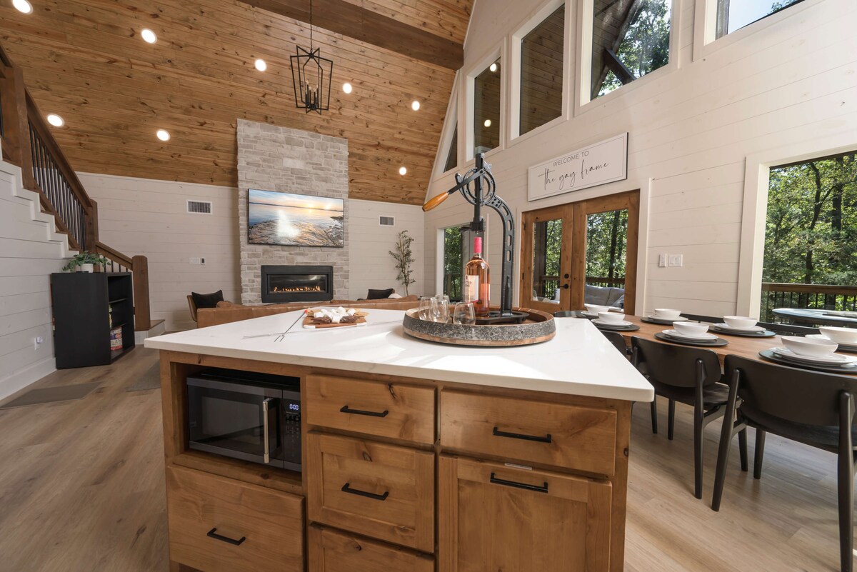 Te damos la bienvenida a Sweet Serendipity: una escapada romántica en el bosque Comodidades de lujo: 🧖Sauna de barril con accesorios 🔥Fogata con gran sofá cama, hamaca y sillas ♨️Terraza trasera privada con sofá modular, jacuzzi y chimenea al aire libre ☕Cafetería totalmente surtida 🥇Juego de cornhole con Koozies de cortesía 💪Equipo de ejercicio: colchonetas y bloques de yoga Lululemon, 2 mancuernas ajustables de 25 lb, bandas de resistencia, cuerda para saltar con peso y rodillo de espuma 🏞️Equipo para exteriores: bastones de senderismo, cañas de pescar y accesorios