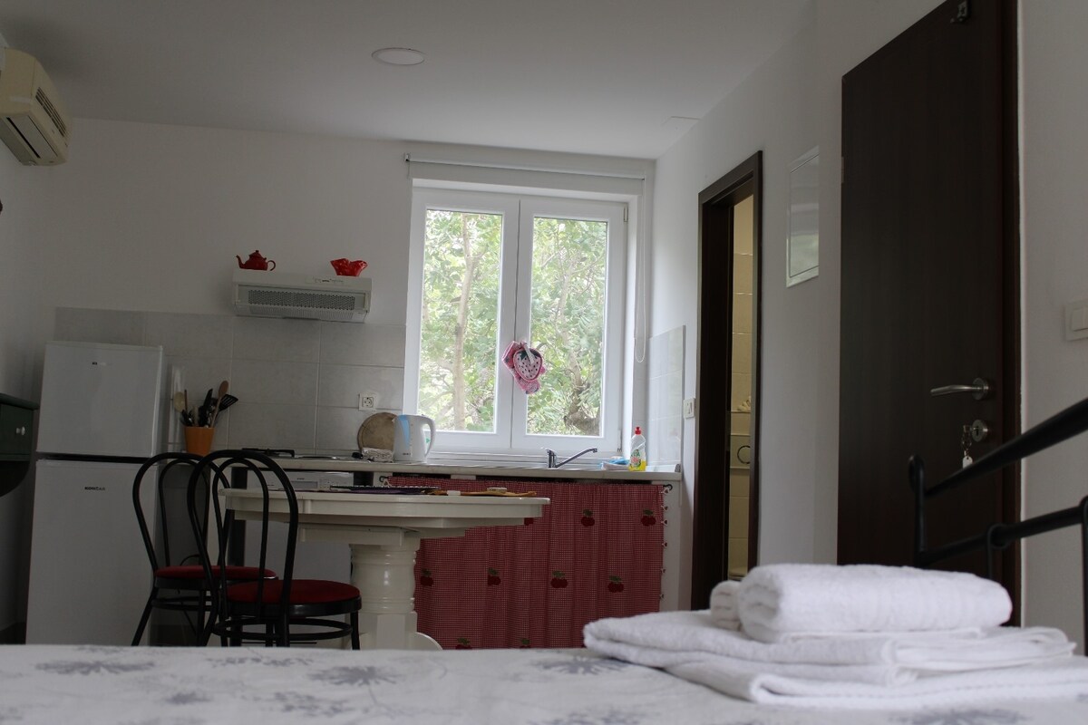 Los apartamentos Donika recientemente renovados. El apartamento estudio tiene una zona de 28 superficies cuadradas y está ubicado en el segundo piso, en la ubicación céntrica del centro histórico de Komiza, muy cerca de cafeterías, restaurantes, tiendas, mercados y playas. A 20 metros de Riva. Estudio con aire acondicionado y un pequeño balcón. Comprende un televisor satelital de pantalla plana, una cocina americana equipada y un baño con ducha.