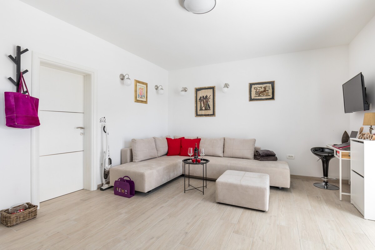 Apartamento Villa ZEN Trogir Trogir - piscina de desbordamiento climatizada (20 de abril de 2026-31 de octubre de 2026) ApA/C, Google TV, lavadora, detergentes, gran terraza privada de 30 m2, 1 lugar de estacionamiento con cargador EV, tipo 2 disponible, piscina privada para 2 apartamentos (7 huéspedes como máximo) en Villa ZEN. Cocina de tamaño completo: lavadora, estufa, horno, refrigerador, calefacción por suelo radiante. Sofá de la sala de estar, 220*300 cm. Habitación A 160*200 (A\C), Habitación B tiene 2 camas 90*200 (A\C) se pueden combinar. El barrio es tranquilo, a solo 150 metros de la playa. Eres bienvenido :)