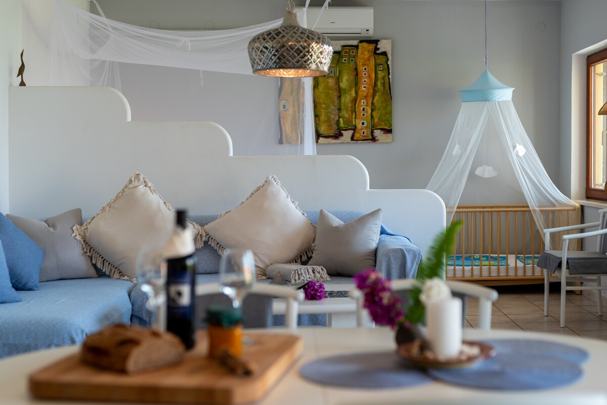 Accommodation has 2 separate apartments on the ground floor (for 12 Person). 1. Apartment has 1 bedroom 180×2, plus 1 single bed 90×2), kitchen, balcony, bathroom with shower cabin. 2. Apartment has 4 bedrooms (One room has the option of a sofa bed for two smaller children or 1 adult), , kitchen, 3 .toilet, large grill terrace.Each room has air conditioning.Total accommodation has 5 bedrooms and 4 bathrooms.Guests have the possibility to use the mooring for the boat.