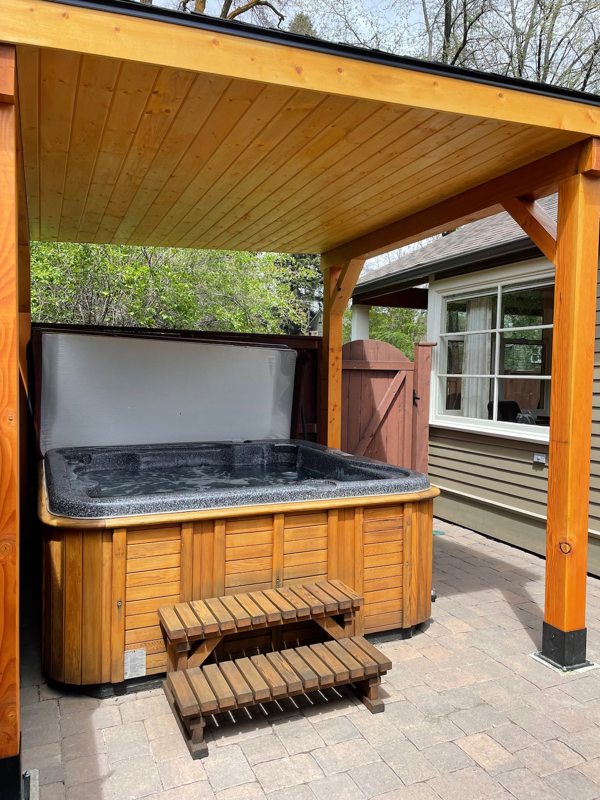 ** ¡RECIÉN INSTALADO! ** ¡La gruta de spa y sauna está lista para tu escapada romántica a Bend! Este tranquilo, arbolado, céntrico y aislado bungalow está a pocos pasos del sendero del río Deschutes, a poca distancia a pie de Mill Dist. y del anfiteatro Hayden. Cuenta con una cómoda cama tamaño king con ropa de cama y almohadas de primera calidad, estacionamiento gratuito dedicado (+ automóviles adicionales o vehículos recreativos pequeños), comedor al aire libre y área de patio, lavadora/secadora y una cocina totalmente surtida con todo lo necesario para divertirse y relajarse en todas las estaciones.