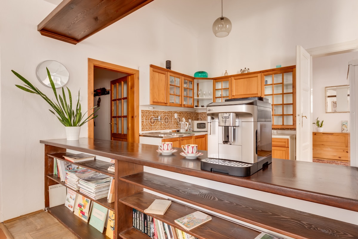Una joya única en Praga: la favorita de los huéspedes en Airbnb. Disponibilidad limitada; suele estar reservado. * Encantador escondite en Praga * Loft reformado con ubicación céntrica a pie * Ideal para parejas, personas que viajan solas o para viajes de trabajo * Wifi de alta velocidad y Smart TV con Netflix * Cocina totalmente equipada. * Se proporcionan sábanas, toallas y artículos de aseo. * Las escaleras de caracol conducen a un dormitorio de ensueño con cama tamaño king. * Baño con ducha a ras de suelo. * Aire acondicionado y ventiladores * Línea de metro A (línea verde) Namesti Miru: 2 minutos a pie