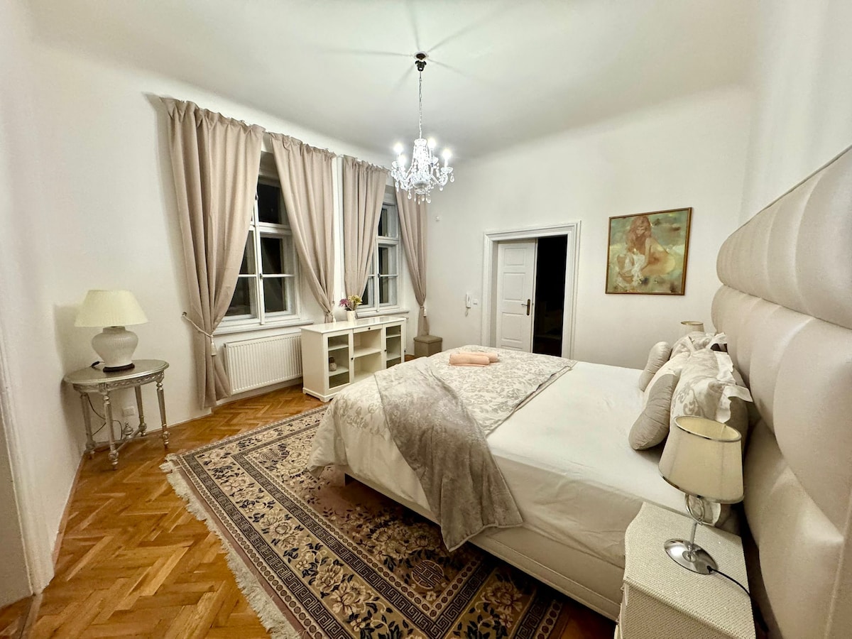 Nuestro ESPACIOSO apartamento de 95 m² está a solo unos PASOS de la plaza Wenceslao, justo en el CENTRO de Praga. La zona está llena de HISTORIA, TIENDAS y RESTAURANTES, por lo que siempre hay algo que VER y HACER. El apartamento está TOTALMENTE EQUIPADO, es ACOGEDOR y perfecto tanto para relajarse como para explorar la ciudad A PIE. Netflix GRATUITO incluido para una noche cómoda. Se encuentra en un EDIFICIO HISTÓRICO, por lo que NO HAY ASCENSOR. A pesar de que está en el CENTRO, es sorprendentemente TRANQUILO por la noche, por lo que puedes dormir bien.