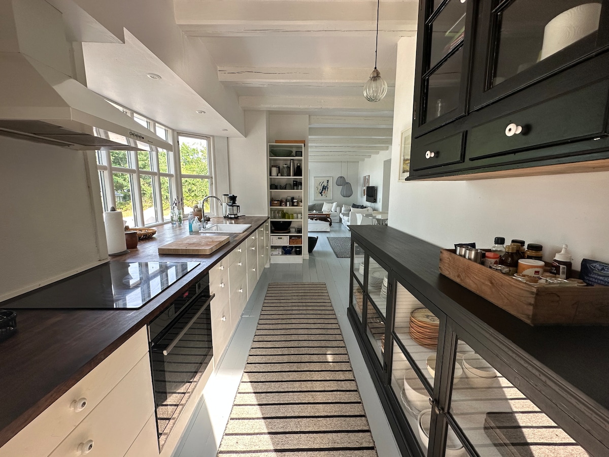 Acogedor anexo de 30 m2, situado en un lugar precioso cerca del lago Ollerup. Construido en 2022 con paredes de ladrillo en bruto y techos de madera, lo que le da un ambiente muy especial. Ideal para 2 personas o una familia pequeña. Cama de 140x200 cm en el salón, así como un altillo con capacidad para dos huéspedes adicionales. (2 colchones individuales) No hay altura de pie en el altillo. Hay una entrada privada, terraza de madera y acceso al lago Ollerup. Check-in a partir de las 16:00 Salida antes de las 12:00 Pregunte si los horarios no son adecuados.