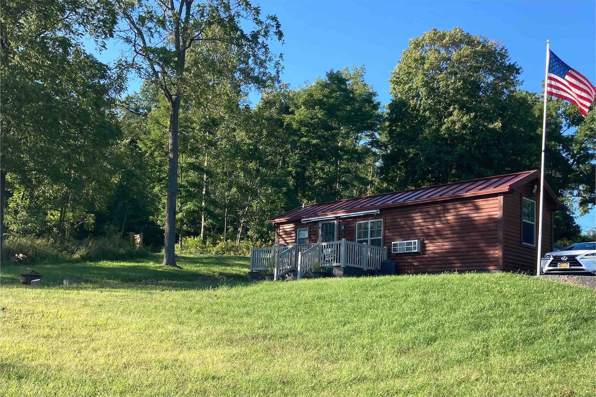 Alójate en nuestra acogedora cabaña completamente renovada en el bosque, donde la elegancia se une a lo pintoresco... enclavada en la región de los lagos Finger y la región vinícola... también incluye cervecerías artesanales... ¡Incluye electrodomésticos/calefacción/aire acondicionado nuevos con todas las comodidades de un hogar! También cuenta con un generador automático en el improbable caso de que se produzca un corte de energía. ¡Esta propiedad ofrece 1 milla de senderos segados y 60 acres para explorar! Senderismo, esquí de fondo y raquetas de nieve disponibles. Pistas de motos de nieve y estaciones de esquí a pocos minutos.