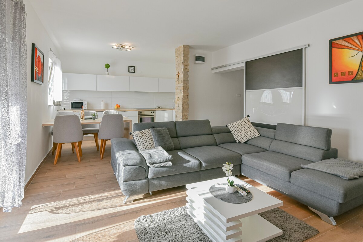 ✨ Apartamento de diseño de dos pisos • Piscina climatizada • Terraza al aire libre Bienvenido a O'live Residence 2, una escapada de dos pisos bellamente diseñada en Bibinje con comodidad moderna, abundante luz natural y excelentes espacios al aire libre. Este departamento, situado cerca de D-Marina y a poca distancia en auto del corazón de Zadar, es perfecto para familias o grupos que buscan comodidad, conveniencia y estilo.