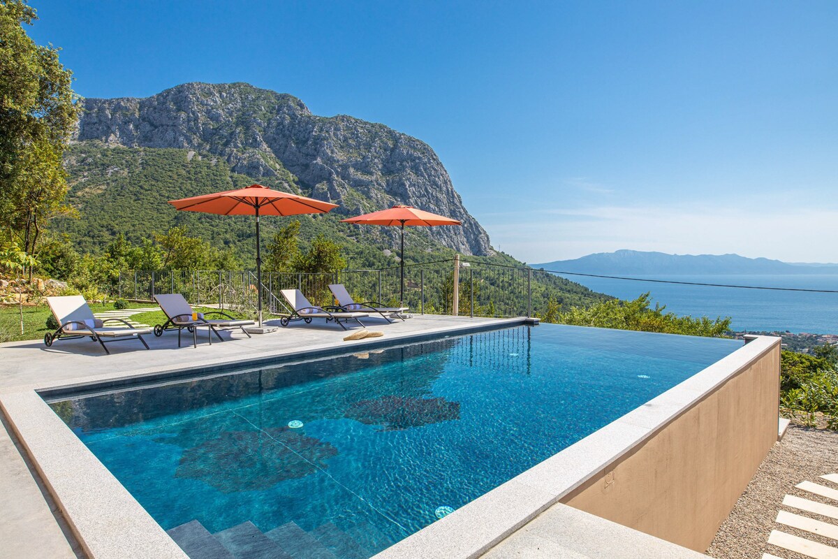 This luxurious, cascading villa is nestled into a verdant landscape, with an oceanfront view overlooking the cerulean sea. The ultra modern interior is detailed with sophisticated touches, such as polished wooden décor and sumptuous sapphire sofas. Your choice of beautiful beaches along the Makarska coast await, with the closest one being just a few short, scenic steps away from your backyard. Each bedroom boasts mesmerizing vistas of either the garden greenery or sparkling surf. A glass railing on the balcony ensures an unobstructed field of vision. Dive into the turquoise-tiled all-season pool for an instant cool down, or take a seat on one of the built-in hydromassage loungers, taking your relaxation to the next level. No matter what season you visit, this modern abode has your comfort taken care of—air conditioning in the summer and a floor heating system in the winter. A fully-equipped kitchen offers all the essentials needed to whip up an inky risotto with a fresh octopus salad. Tucked around the side of the house is an alfresco dining option. Ideal for a family vacation, the kids will love the stretches of sugary sand while adults can appreciate the beauty of watching the sun setting over the horizon with a chilled glass of champagne in hand. Why not see as much of Croatia as possible while you’re there? Villa Blue Moon’s location is ideal for day trips to nearby cities such as Dubrovnik, Mostar, and Makarska. The islands of Hvar, Korcula and Peljesac peninsula are also easily accessible. Copyright © Luxury Retreats. All rights reserved. BEDROOM & BATHROOM • Bedroom 1 - Primary: King size bed, Ensuite bathroom with stand-alone bathtub, Safe • Bedroom 2: King size bed, Ensuite bathroom with stand-alone rain shower, Access to shared balcony, View of Adriatic Sea • Bedroom 3: King size bed, Ensuite bathroom with stand-alone rain shower, Access to shared balcony, View of Adriatic Sea • Bedroom 4: 2 Twin size beds (can be converted to a king), Ensuite bathroom with shower/bathtub combo, View of Adriatic Sea STAFF & SERVICES Extra cost (advance notice may be required): • Additional housekeeping • Activities and excursions • More under “Add-on services” below