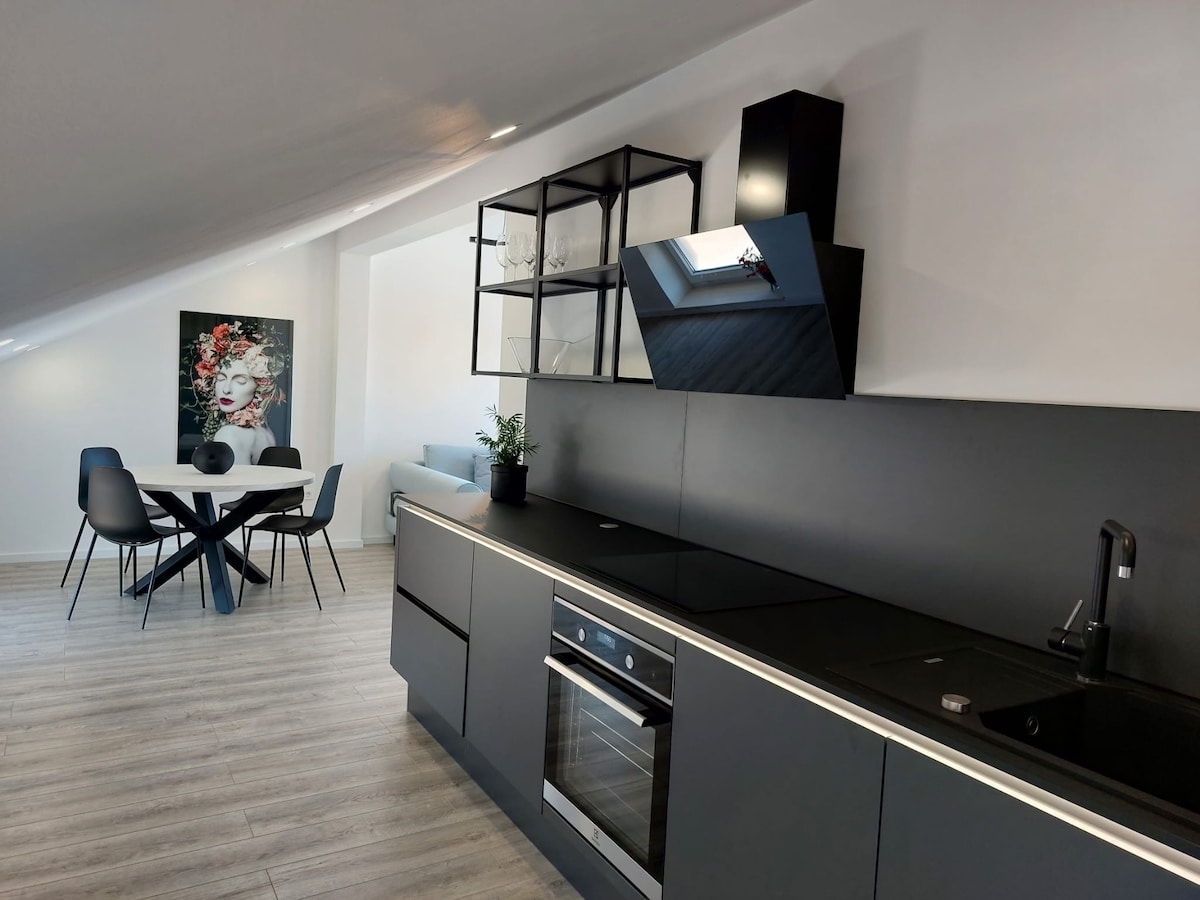Luminoso y moderno ático de dos dormitorios con impresionantes vistas. Ubicado en un lugar pintoresco y tranquilo. Céntrico para todos. Recientemente renovado con cocina completa, terraza privada, aire acondicionado, TV de pantalla plana, WIFI GRATUITA y estacionamiento gratuito.
