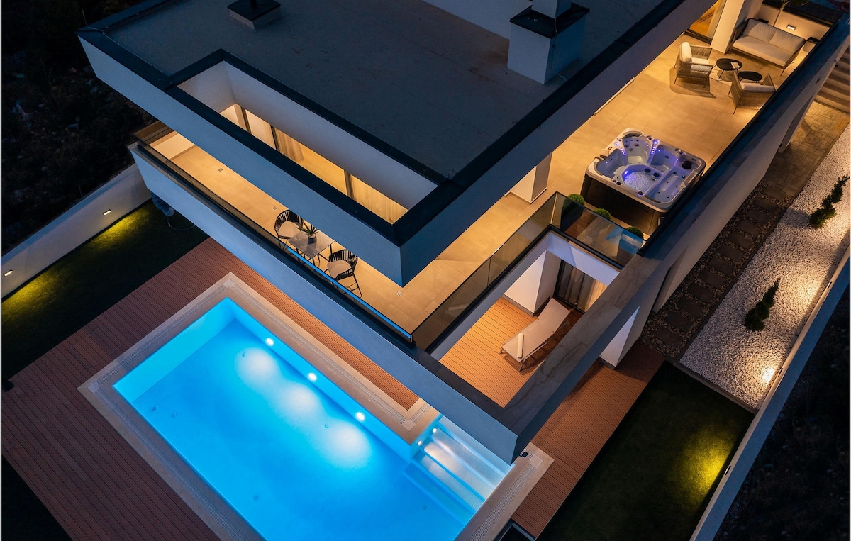 Villa Amy con vistas al mar: piscina privada, sauna y jacuzzi