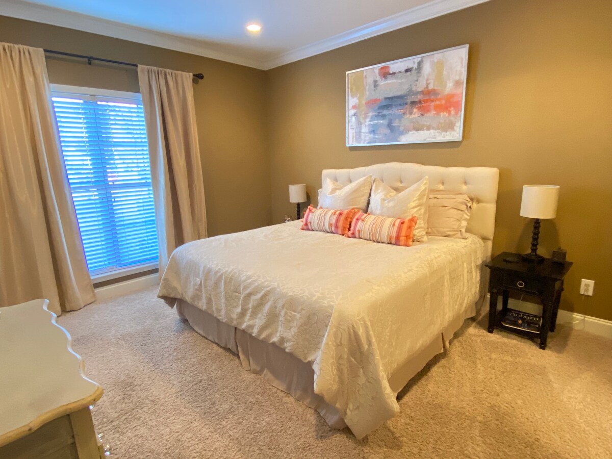 ¡Esperamos que disfrutes de nuestra casa adosada en Auburn! Este alojamiento de dos pisos tiene capacidad para 6 personas. Tiene 2 dormitorios principales, arriba y abajo. Además, hay un gran loft con una cama nido (capacidad para 2 personas). Te encantará relajarte en el estudio con su techo alto de dos pisos. Esta zona tiene TV de pantalla plana y chimenea. La cocina es comedor y afuera hay un patio privado cubierto con un fogón. Está en una ubicación perfecta a solo 4 millas (aproximadamente 10 minutos en auto) de AU. ¡Espero que puedas visitar nuestro “hogar lejos de casa”!