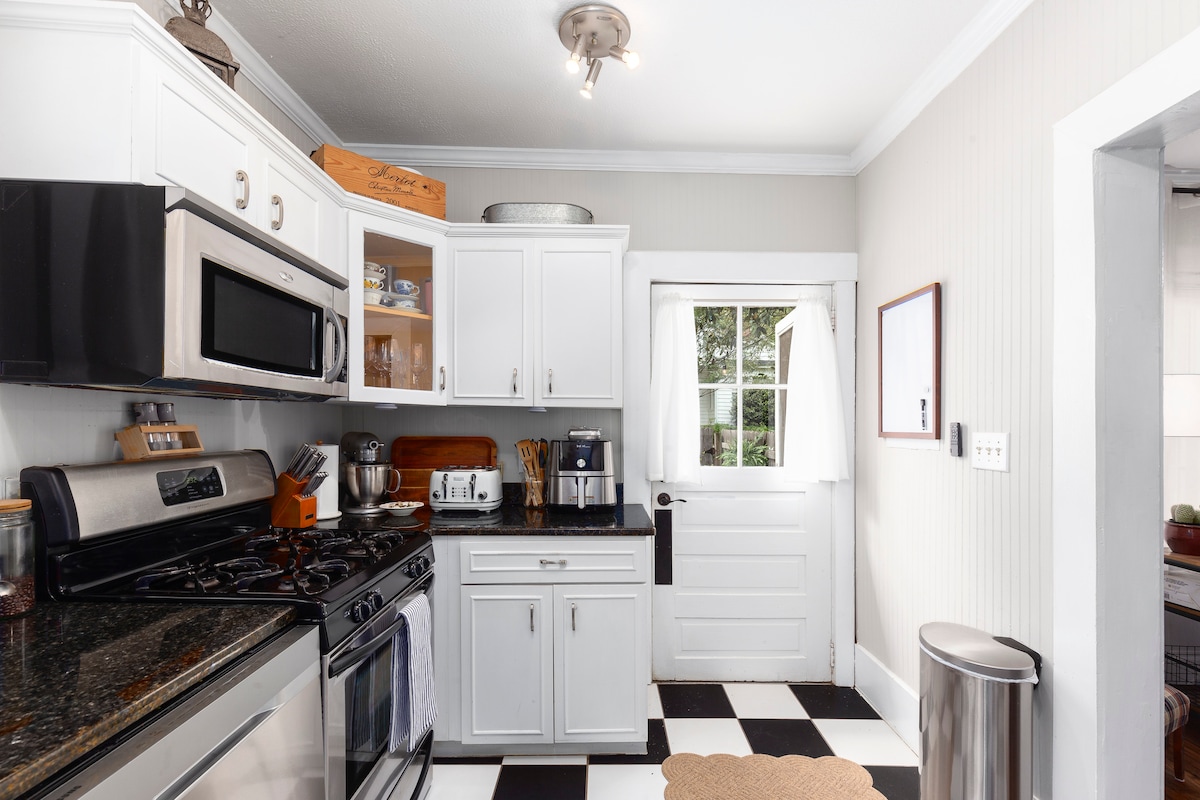 ¡Encantadora casa de campo de estuco en el distrito histórico de Opelika! Ubicación 🏡 Bienvenido al Rigloo en 5th: a poca distancia a pie del centro de Opelika y a solo unos minutos de Auburn. Adecuado para niños 👶🏻 ¡Deja el corral de juegos en casa y disfruta de nuestro alojamiento equipado con una guardería establecida! Cerca de la acción 🏈 Ya sea que estés en la ciudad para un día de juego de Auburn, un torneo de pickleball o un fin de semana de ligas menores, nuestra casa sirve como una casa club segura y cómoda, a minutos de la acción.