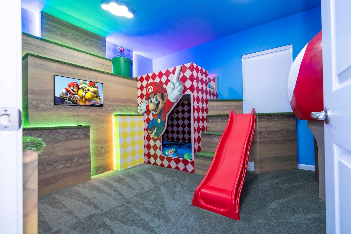 Nuestros alojamientos vacacionales te llevarán a la experiencia más allá de una estancia sencilla. Nunca es solo una casa temática, es una experiencia más allá de los parques. Nuestras habitaciones temáticas, salas de juegos, áreas comunes, piscinas y cada detalle fueron pensados para garantizar que tengas la mejor experiencia posible. * Alojamiento: 30 * Habitaciones: 15 * Baños: 15.5 * Tipo de propiedad: unifamiliar * Ubicación: Paradiso Grande