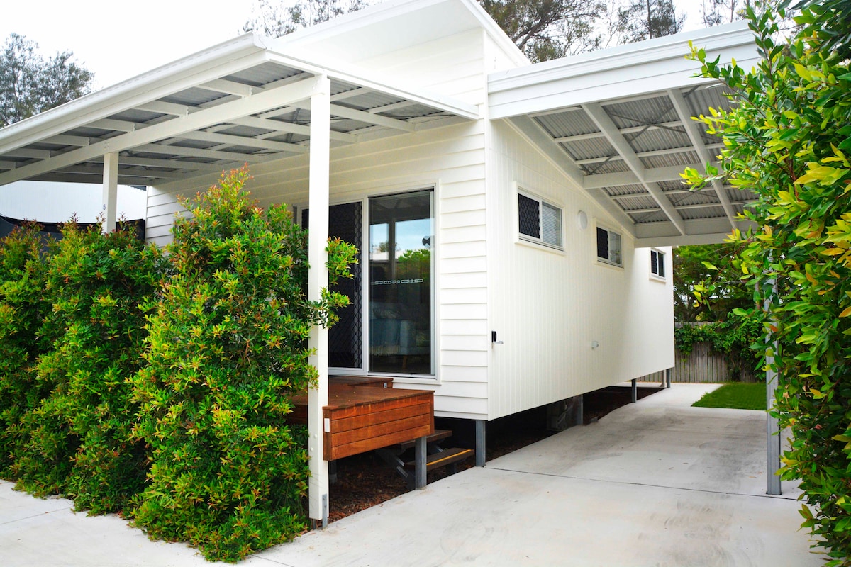 Relájate y descansa en esta pequeña casa única y totalmente independiente. Ubicado en 5 acres tranquilos, este oasis privado es ideal para escapadas románticas, aventuras de avistamiento de ballenas, viajes a K'gari o como base para Lady Elliot Island. A 14 minutos del ferry de K'gari/Fraser Island y a 10 minutos de los restaurantes, playas y el muelle de Urangan de Hervey Bay. Siéntate en la terraza abierta o acércate a la fogata con tu bebida favorita y disfruta de las impresionantes puestas de sol de Hervey Bay, la vida silvestre y los canguros.