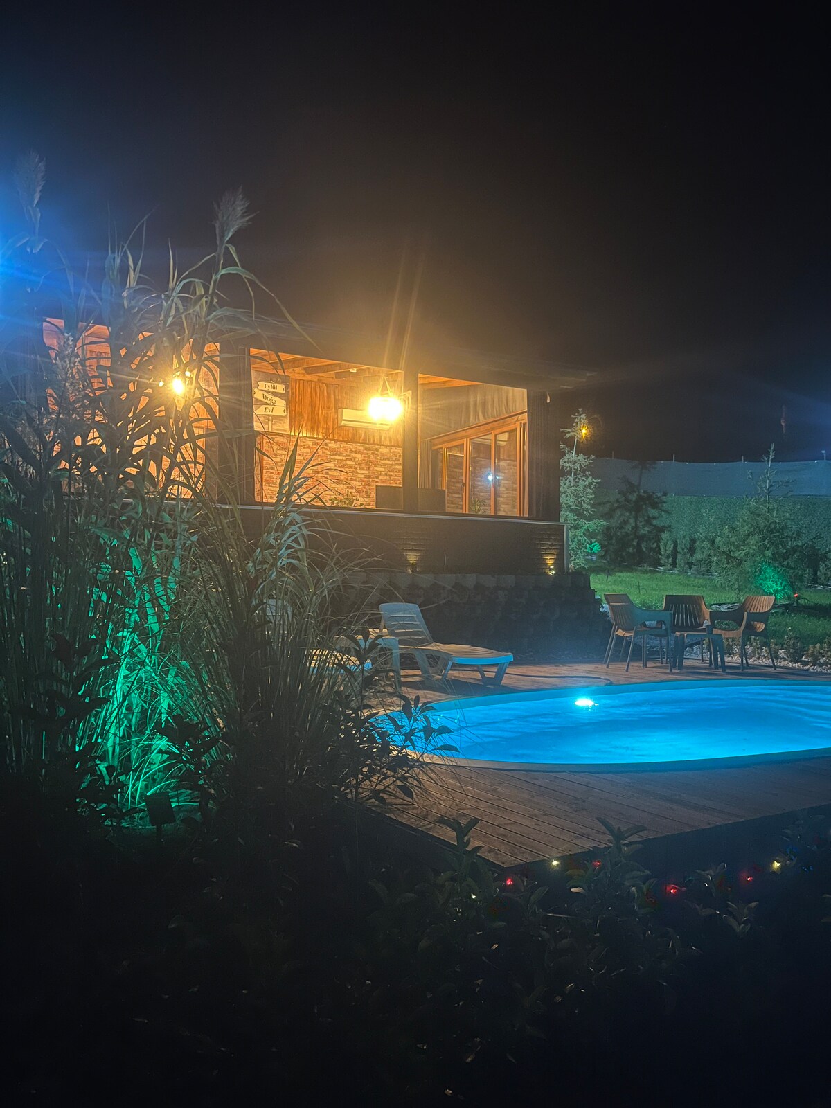 Villa de piedra con jacuzzi y piscina climatizada con vista al lago