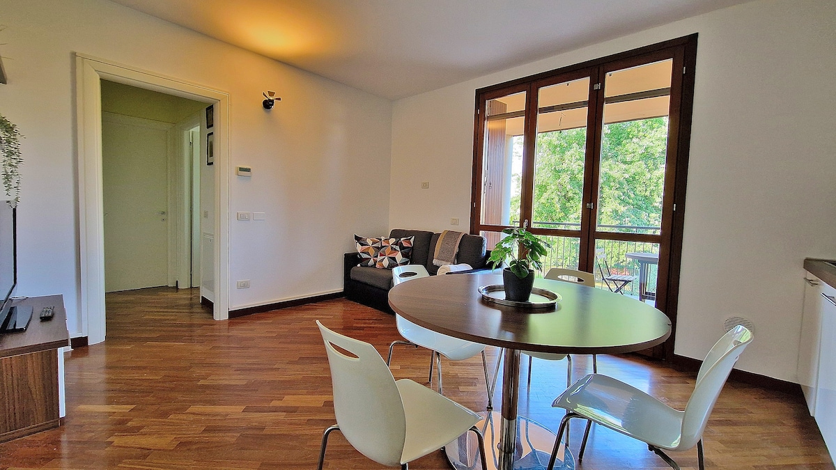 El apartamento es un acogedor apartamento de dos habitaciones con vigas de madera a la vista en un tranquilo condominio a solo 10 minutos a pie del centro y a pocos pasos del supermercado. El alojamiento está situado en el tercer piso y se puede llegar en ascensor. Vaprio se encuentra a medio camino entre Bérgamo y Milán, a pocos minutos de las salidas de la autopista A4 de Trezzo sull'Adda y Capriate y a solo 10 minutos en coche del parque de atracciones Leolandia.