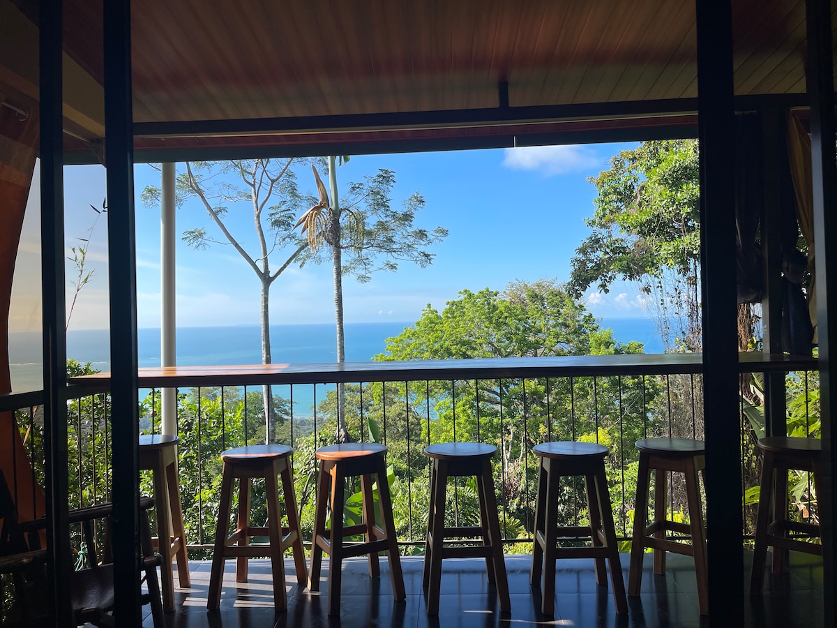 Esta casa de 2 dormitorios tiene las mejores vistas de Drake Bay. Está justo en medio de la ciudad, cerca de restaurantes de minimercados y de la playa. Acabados de madera artesanales en todas partes, aire acondicionado en las habitaciones y vistas impresionantes, es perfecto para que amigos y familiares disfruten de lo mejor que Osa tiene para ofrecer. José ayuda a administrar la propiedad, ya que vive cerca y organizará tus recorridos, te dará recomendaciones de restaurantes e incluso te pedirá una pizza.