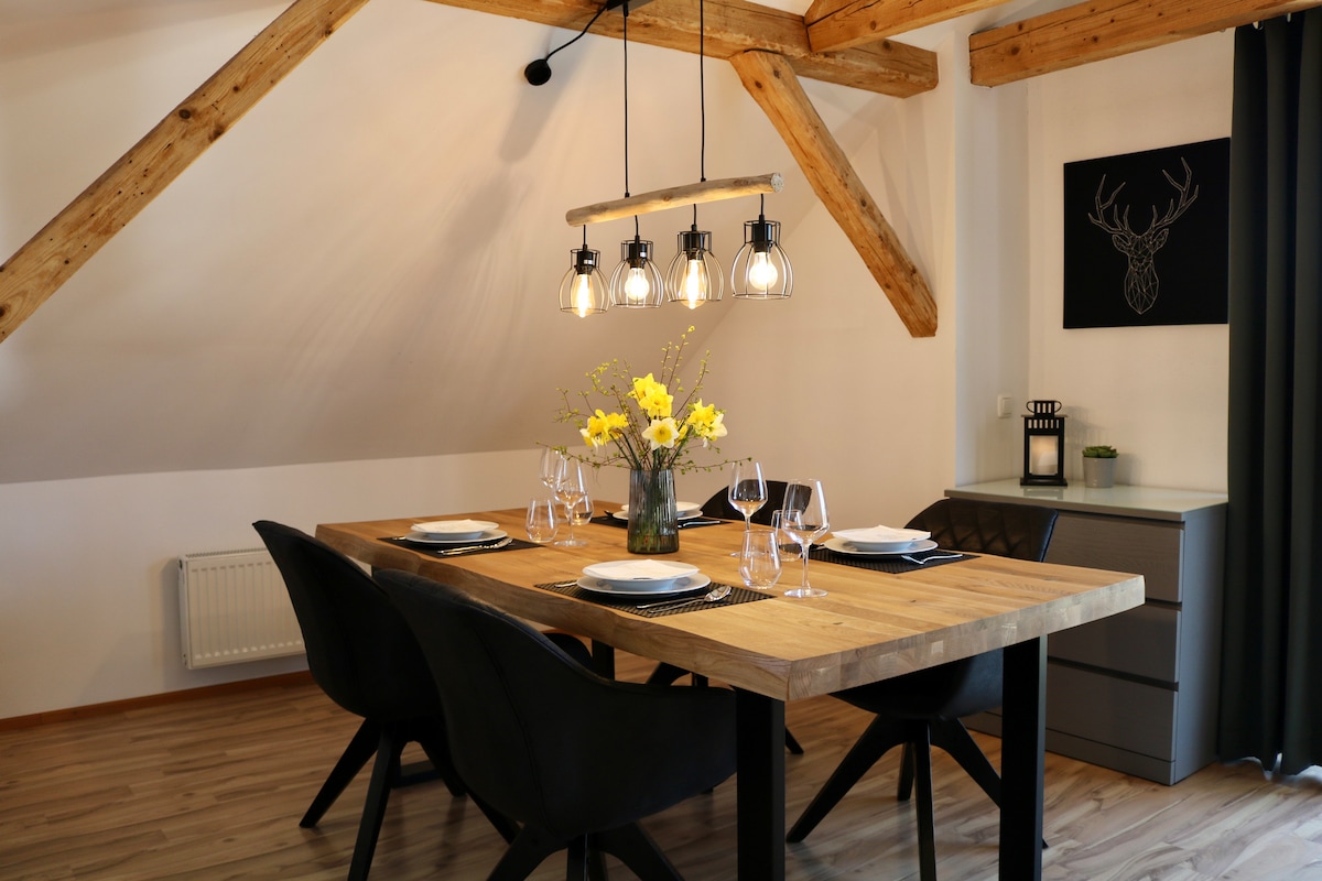 Este departamento especial destaca por su estilo decorativo moderno. Está equipado con instalaciones para dormir hasta 4 personas y ofrece una cocina bien equipada, un elegante comedor, un baño con ducha, un acogedor dormitorio con dos camas individuales de 90 x 200 cm, que también se pueden conectar a una cama doble, y una luminosa sala de estar con un sofá que se puede transformar en una cama de 140 x 200 cm.
