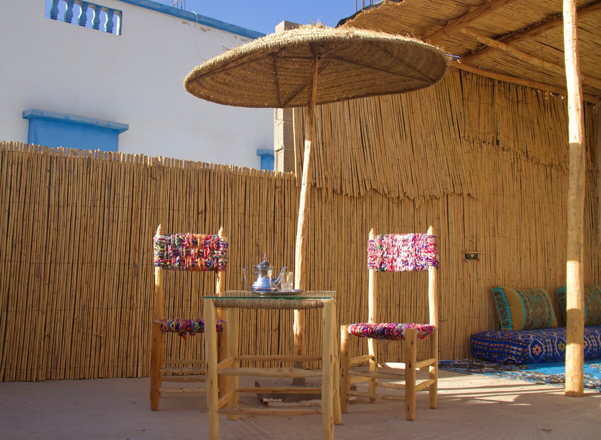 Bienvenido a tu acogedor refugio en el corazón de Tamraght. Este apartamento privado, ubicado dentro de una acogedora casa de surf, es la mezcla perfecta de comodidad y autenticidad, diseñado para viajeros que quieren sentirse como en casa mientras exploran el surf y la cultura de Marruecos.