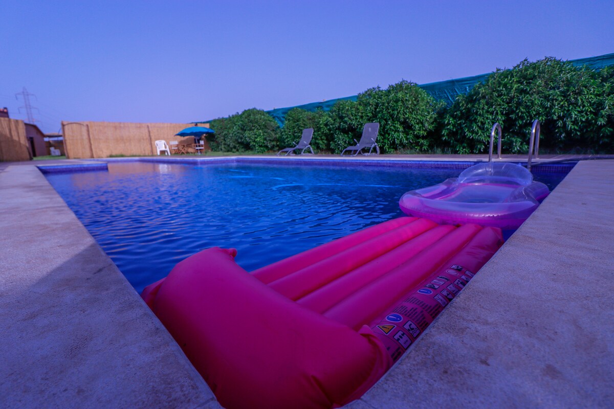 Domaine Grenadine (Gdana): 12ha private estate, no overlooking, open countryside views. Rustic non-premium villa for disconnection, starry nights and fire-pit evenings. Panoramic terrace, outdoor dining, BBQ. Private pool (3.5×2.5m). 2 bedrooms, 2 bathrooms, equipped kitchen, gated parking (3 cars). Meals, Casablanca transfer, extra cleaning, baby cot + high chair (extra fee).