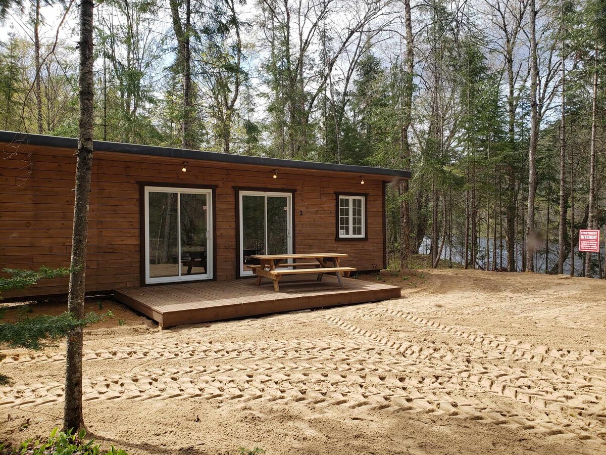 Ce mini-chalet de 1 chambre et un divan lit pouvant accueillir 4 personnes est chaleureusement aménagé et situé sur un site paisible en pleine forêt. Bordant la Rivière Coulonge, vous serez émerveillez par la tranquillité et la beauté qui s'étend devant vos yeux.