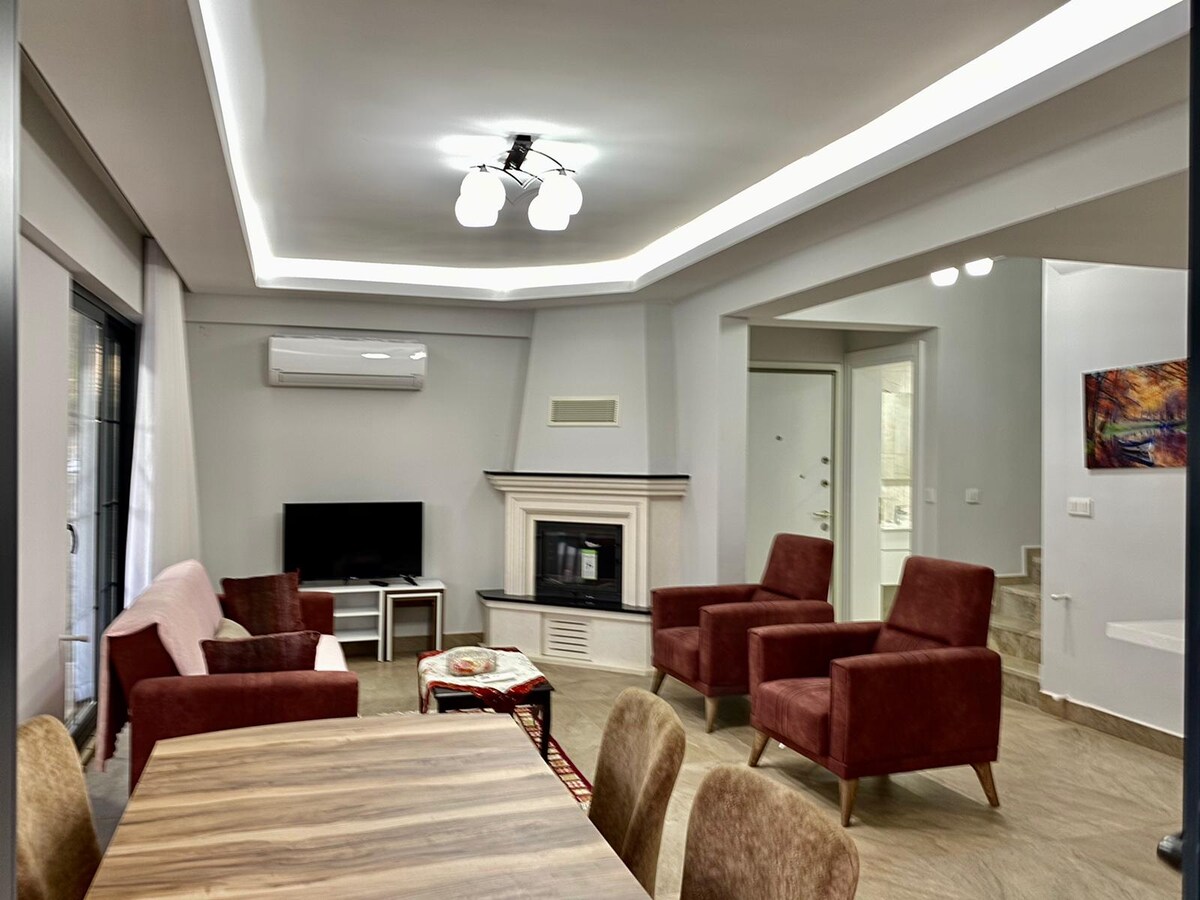 Una villa moderna y bien acabada de 2 dormitorios grandes ubicada en el Oludeniz, Fethiye. La villa es adecuada para familias que quieren privacidad y libertad en un entorno natural. 1000 mbps. Puedes disfrutar de la terraza con piscina privada. Las tumbonas y una zona de estar suave te permiten relajarte y descansar mientras disfrutas de las excelentes vistas. Hay una barbacoa para comer al aire libre por la noche. A 8 minutos a pie del centro. A 9 minutos en coche de la playa. Envía un mensaje antes de enviar la solicitud de reserva.