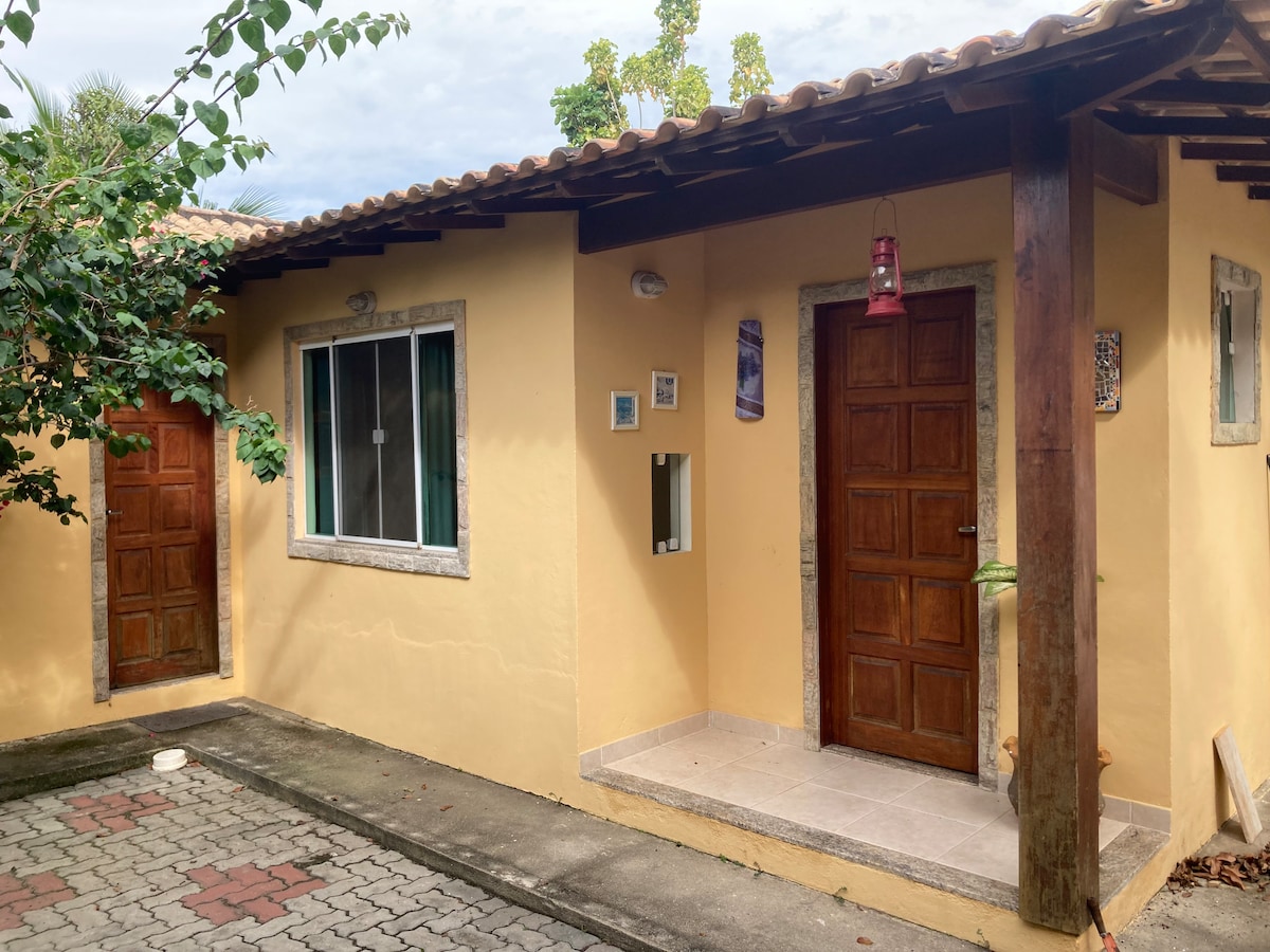 Casa completa, muy bien valorada por los huéspedes. casa con 2 dormitorios con aire acondicionado y cama box, sala de estar, cocina, baño, área de servicio con lavadora, área gourmet con parrilla y plaza para 2 coches. Wi-Fi de 500 mega, TV con Netflix y YouTube A 900 metros de la playa de Tucuns, a 1900 metros de la popular playa de Geriba, a 1800 metros de la playa de Manguinhos. A 350 metros de panadería y tiendas, a 900 metros de supermercado, a menos de 5 km del centro.