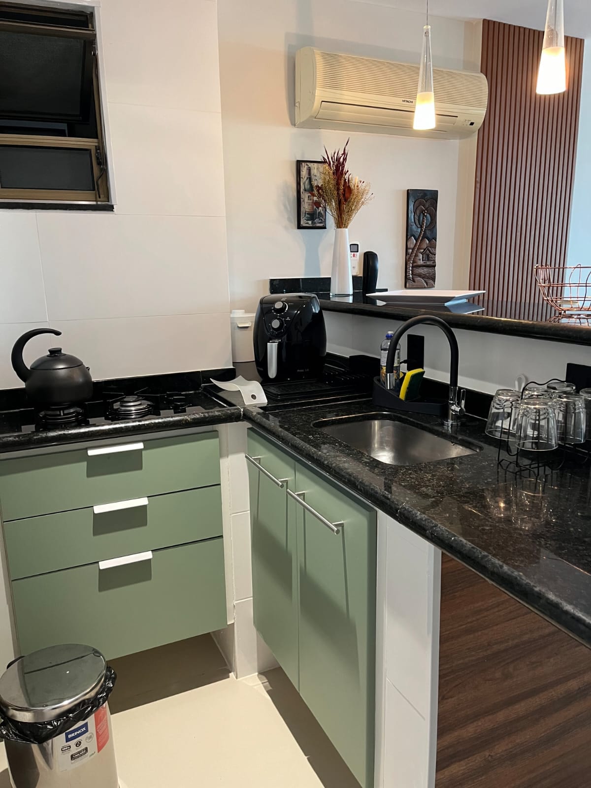 Loft decorado de forma práctica para aquellos que quieren descansar y disfrutar de las bellezas del mar de Arraial do Cabo. Cuenta con aire acondicionado, ventiladores de techo, TV por cable y streaming, wifi, nevera, cocina, microondas, airfryer, horno eléctrico, sandwichera, licuadora, cafetera, utensilios básicos de cocina para preparar comidas pequeñas, cama doble y un sofá cama. El edificio está a 50 metros de Prainha. El estacionamiento es rotativo y no hay plazas disponibles para todos los lofts.