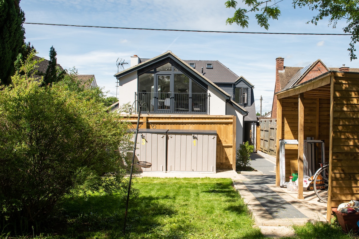 ¡Descuentos para estancias semanales y mensuales! Entra en un refugio de estilo y comodidad, decoración moderna y abundante luz natural. La cocina de planta abierta, el comedor/sala de estar son acogedores y agradables, mientras que ambos dormitorios ofrecen baños privados y acceso directo a tu propio patio para relajarte después de un día de aventura. Lugares de interés de Oxford: Biblioteca Bodleiana, Museo Ashmolean y Castillo de Oxford. ¿Te gusta ir de compras? Westgate y Bicester Village son tus opciones. ¿Londres? A menos de una hora en tren. ¡Ocio/Negocios, tenemos lo que necesitas!
