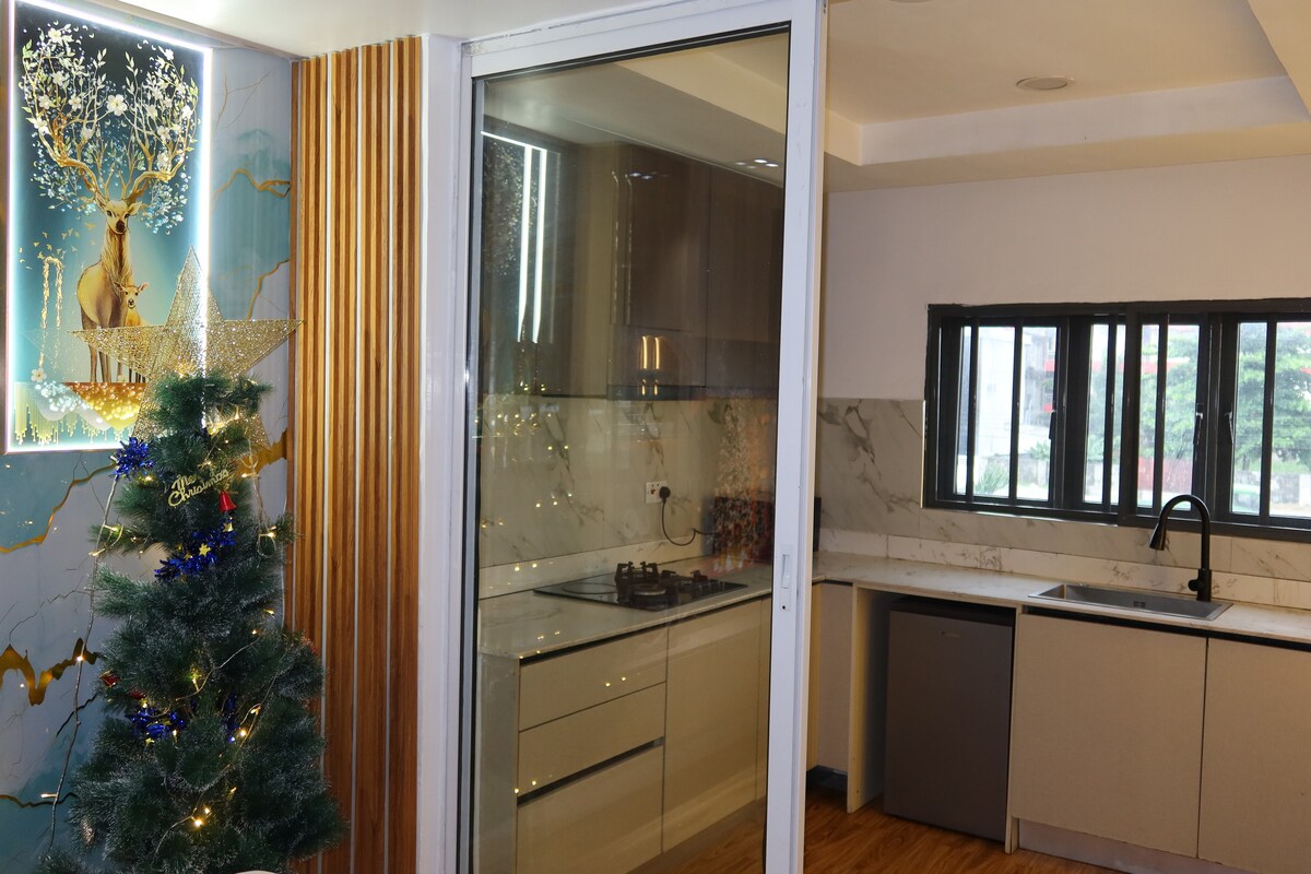 This studio apartment offers 24-hour lighting in a serene environment, conveniently located on a major road. It's a 15 minute drive to the airport and a 16 minute drive to GRA. The apartment comes equipped with: - Inverter system - CCTV camera - Netflix - WiFi - Air conditioner - Android TV - Fridge - Equipped kitchen - Semi-orthopedic foam and fiber pillows Your comfort is guaranteed
