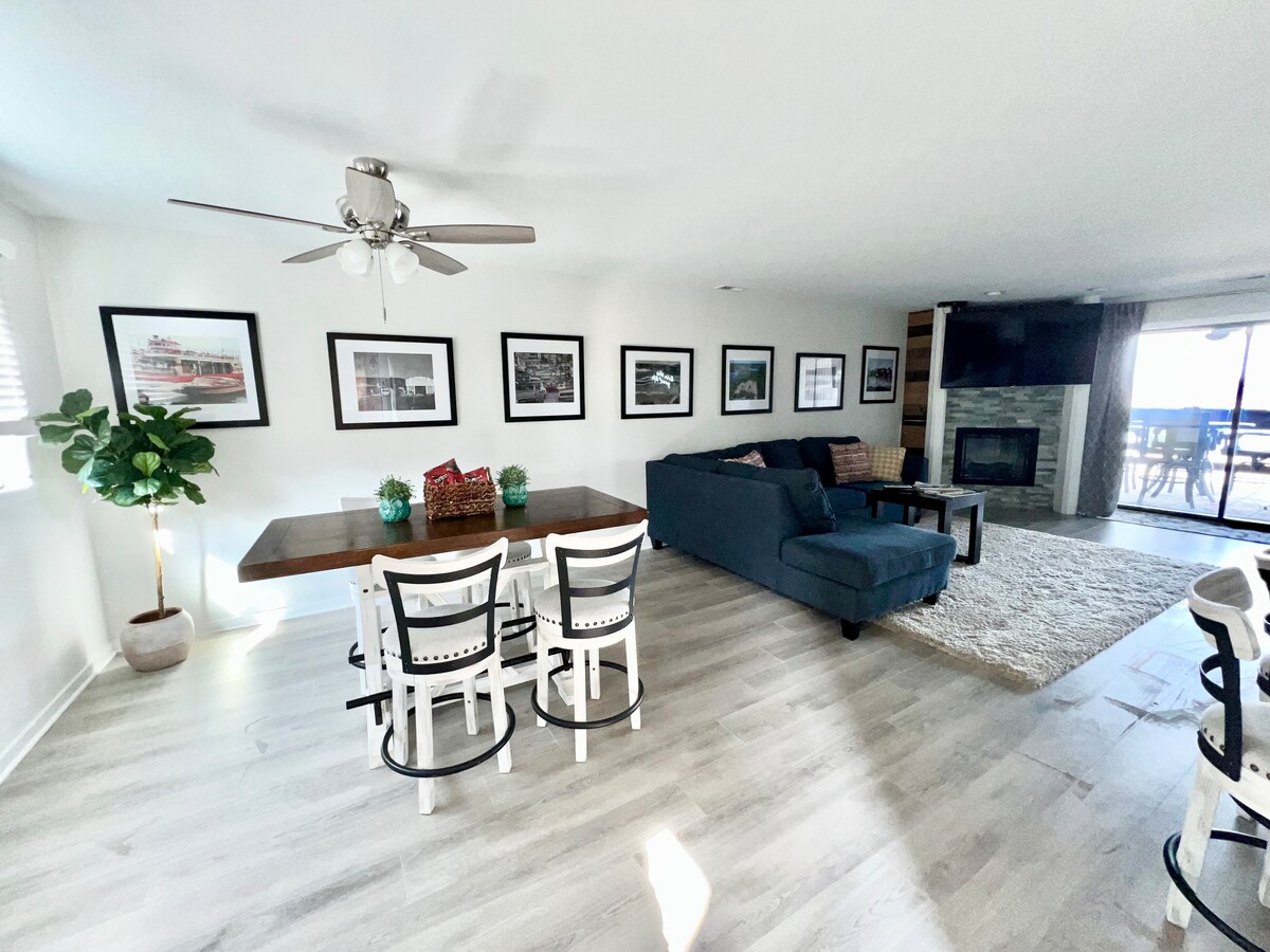 ¡Hemos actualizado nuestro espacio pensando en ti! Unidad final de nivel superior con techos abovedados, mucha luz natural, cerca de la cubierta de natación y servicios. ¡Muebles cómodos en todas partes! El centro vacacional es un clásico del lago y tiene una ubicación céntrica. A tu familia le encantará pasar tiempo aquí, creando recuerdos en las piscinas y en el lago, o en el parque infantil y las canchas de tenis. ¡Casi puedes oír las risas de familiares y amigos en la terraza! Cerca de comida, entretenimiento y diversión. ¡Nos encantaría ayudarte a planificar tu próxima escapada!