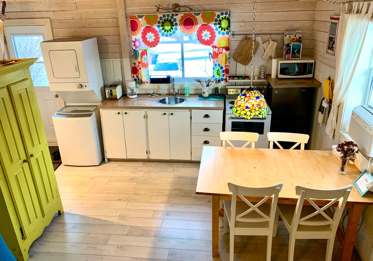 Mylène Henry es una pintora e ilustradora gaspesiana que ha sabido transformar una simple cabaña en una encantadora mini casa que parece salir de un cuento de hadas. Venga a alojarse en un lugar con un panorama grandioso alojado en un punto de referencia de marinero que parece esconder sus tesoros más bellos. La cabaña es perfecta para una pareja, una familia de 2 padres y 2 niños o 2 amigos. No recomiendo la cabaña para familias de más de 4 personas y personas con movilidad reducida.
