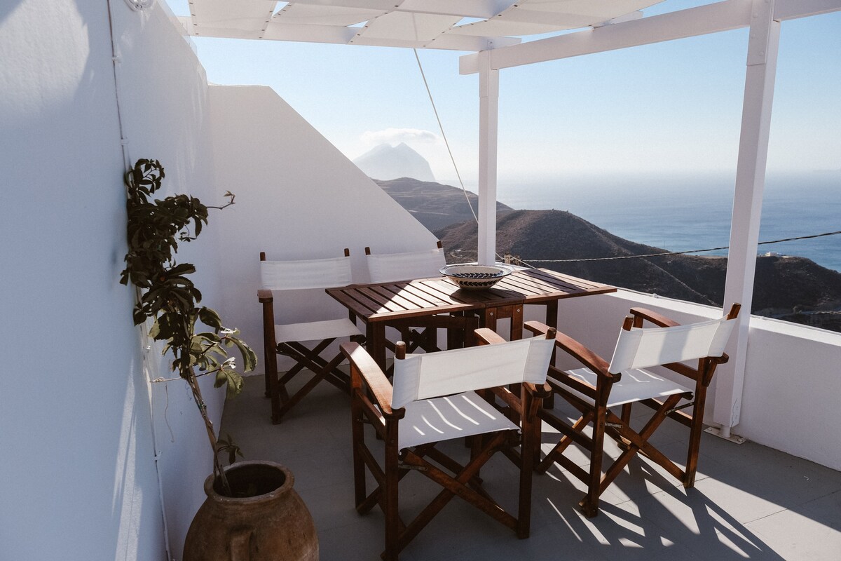 ¡My Little 2 se encuentra en el centro del hermoso y tradicional pueblo de Acrotiri! ¡Es uno de los dos estudios de una casa cicládica excepcional y totalmente renovada del siglo pasado que puede cubrir todas las necesidades del huésped! ¡Está en la primera planta de la casa!¡En su balcón privado podrás relajarte y disfrutar de las vistas del castillo veneciano y de las impresionantes vistas al mar! El estudio cuenta con una cocina pequeña pero totalmente equipada, una encantadora cama incorporada para disfrutar de tu sueño y un baño grande.