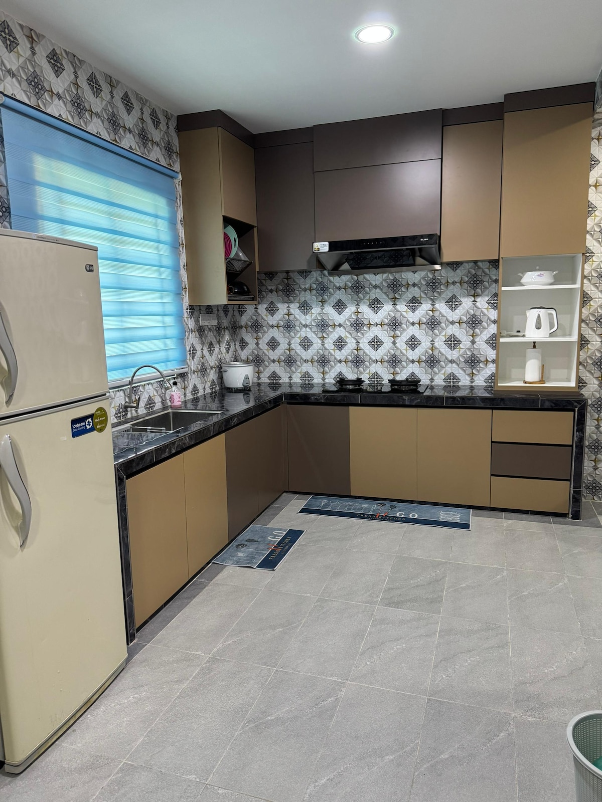 Bienvenido a nuestra amplia casa adosada ubicada en el corazón de la ciudad de Kulim. Disfruta de las comodidades de un hogar junto a un entorno seguro y tranquilo. Dormitorio 1 (dormitorio principal) 2 unidades de cama tamaño queen con aire acondicionado de 1,5 hp + baño privado con calentador de agua Habitación 2 2 unidades de cama individual con aire acondicionado de 1,5 hp Habitación 3 1 unidad de cama tamaño queen con aire acondicionado de 1,5 hp Sala de estar moderna y elegante - Sala de estar con aire acondicionado. - Televisión inteligente con canal MYTV