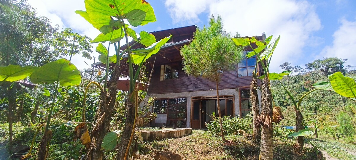 Despierta en la selva alta Jacuzzi a leña con vista infinita al valle y al bosque, disfruta de luciérnagas, mariposas azules y cielo estrellado. Capacidad Para 11 huéspedes. 1 King, 2 matrimoniales, 1 doble y 1 triple. 3 Baños, uno en cada nivel; tercer piso con vista panorámica. Naturaleza y entorno Agua de manantial, paneles solares (uso moderado), terma solar, mariposas azules, frutales y riachuelo. Turismo cercano Catarata Velo de la Novia a 50 min; cuevas y miradores en 50–60 min.