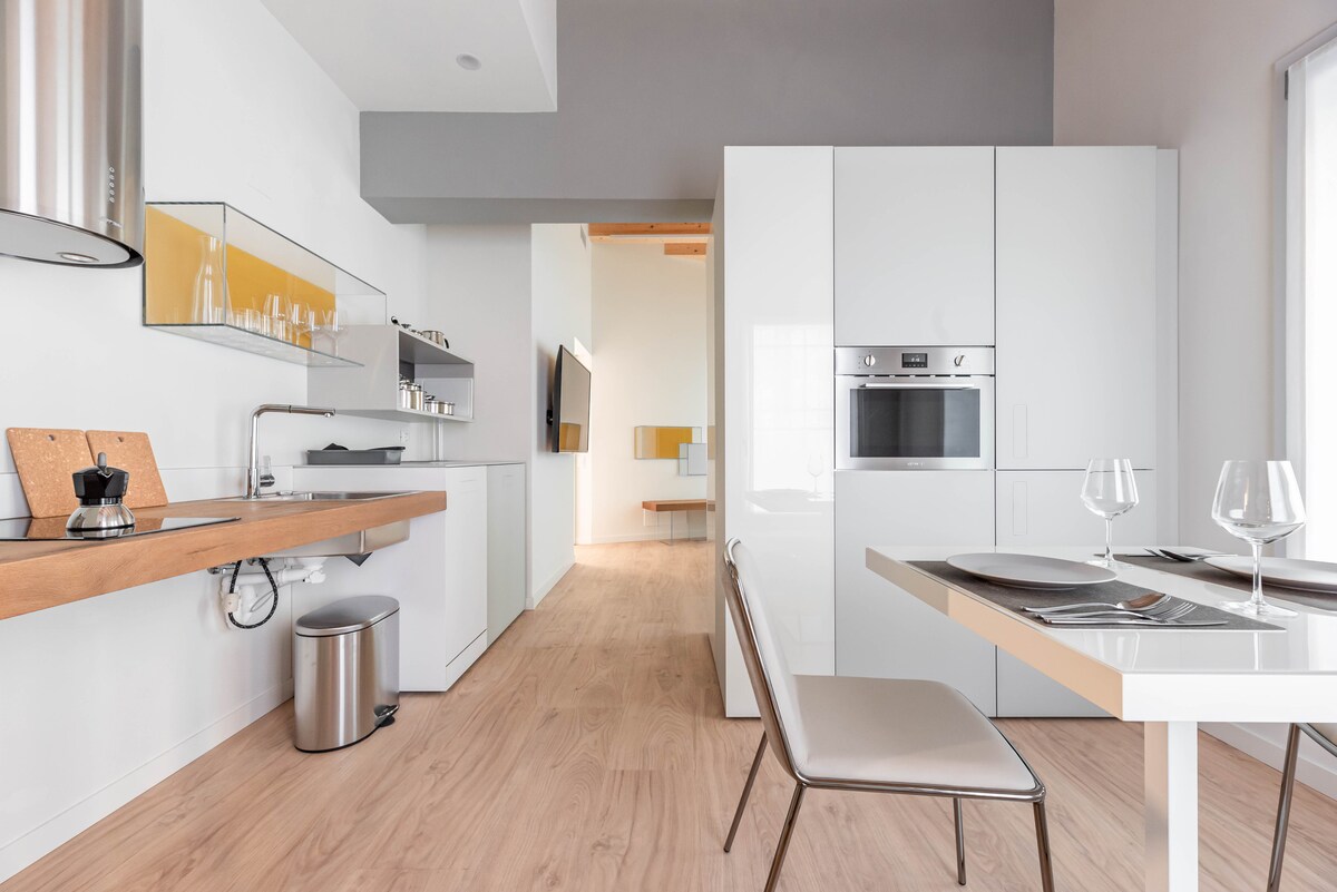 Cada vez que entro en el apartamento y me asomo a la ventana me parece que me sumerjo en el corazón de la ciudad. El ritmo de Padua está marcado por los puestos, las mesas de los bares, el bullicio de quienes corren al trabajo y quienes, en cambio, se lo toman con calma. El apartamento es luminoso y tiene vistas tanto a la Piazza dei Signori como a la Via Dante. Un ascensor, un lujo para el centro de la ciudad, os llevará al tercer piso del edificio histórico, desde donde podréis disfrutar de unas vistas que os sorprenderán.