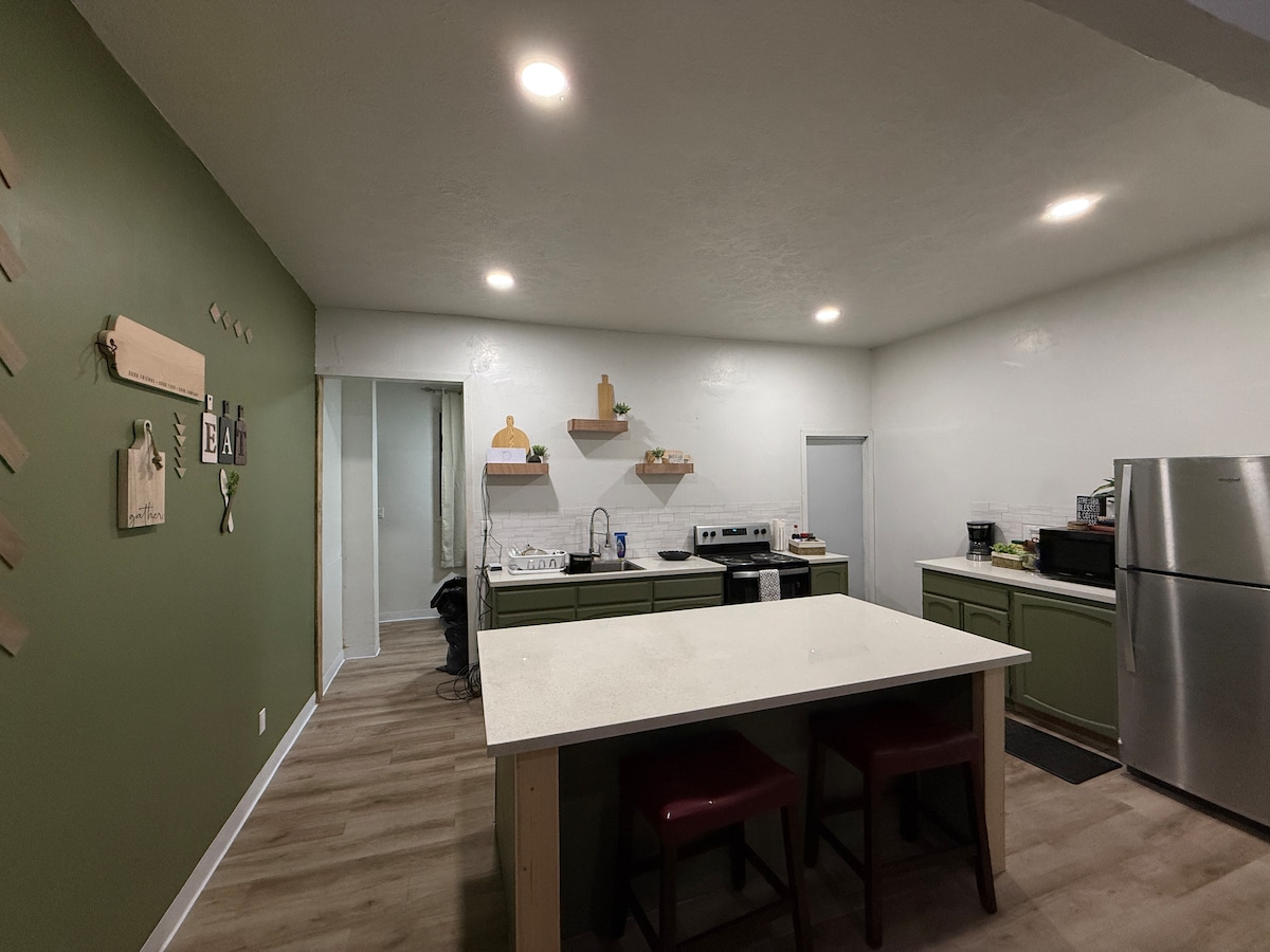 Disfruta de una experiencia acogedora en este apartamento de 1 dormitorio actualizado, totalmente independiente con baño (ducha) y cocina totalmente equipada. El apartamento tiene una cama tamaño queen en el dormitorio y una cama tamaño queen extraíble en la sala de estar. Equipado con aire acondicionado, agua caliente, wifi, TV de 50 pulgadas con Roku y lavadora/secadora que funciona con monedas en una lavandería separada. Ubicado en el centro de un complejo privado y seguro, muy cerca del aeropuerto, campo de golf, tiendas importantes y restaurantes populares.