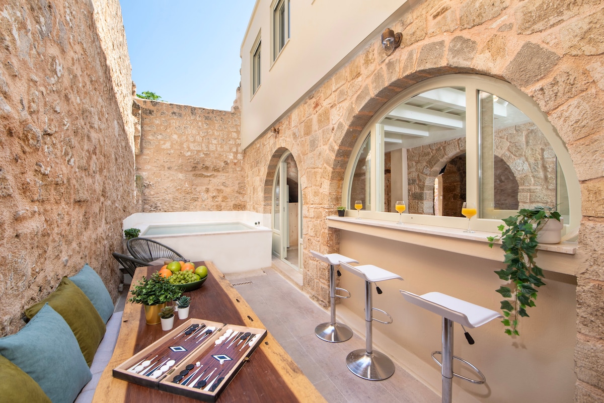 El elegante encanto del pasado caballeresco combinado con un diseño elegante inspira la estancia en esta casa de ubicación secreta, en el corazón de la ciudad medieval de Rodas. Todo lo que hay que ver está cerca, mientras que la paz y la tranquilidad de su jardín privado relajan la mente. Ideal para parejas y familias que adoran las experiencias memorables.