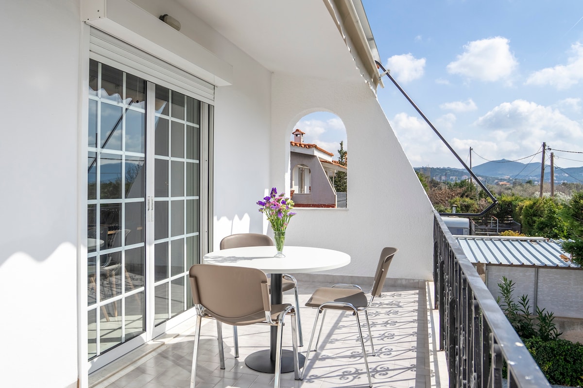 Es un apartamento independiente y cómodo, de 60 m2 con acceso directo a un hermoso jardín y unas vistas espectaculares del mar desde la sala de estar y el dormitorio. Ubicado en una zona muy tranquila de Artemida (suburbio de Atenas) a 1,8 km del centro de la ciudad, a 15 minutos en auto del aeropuerto y a 20 minutos del puerto de Rafina. Nuestros huéspedes pueden disfrutar de momentos de relajación entre vuelos o reservar unas vacaciones completas lejos del ruido del centro, pero lo suficientemente cerca (1,8 km) si quieres un restaurante o un pub.