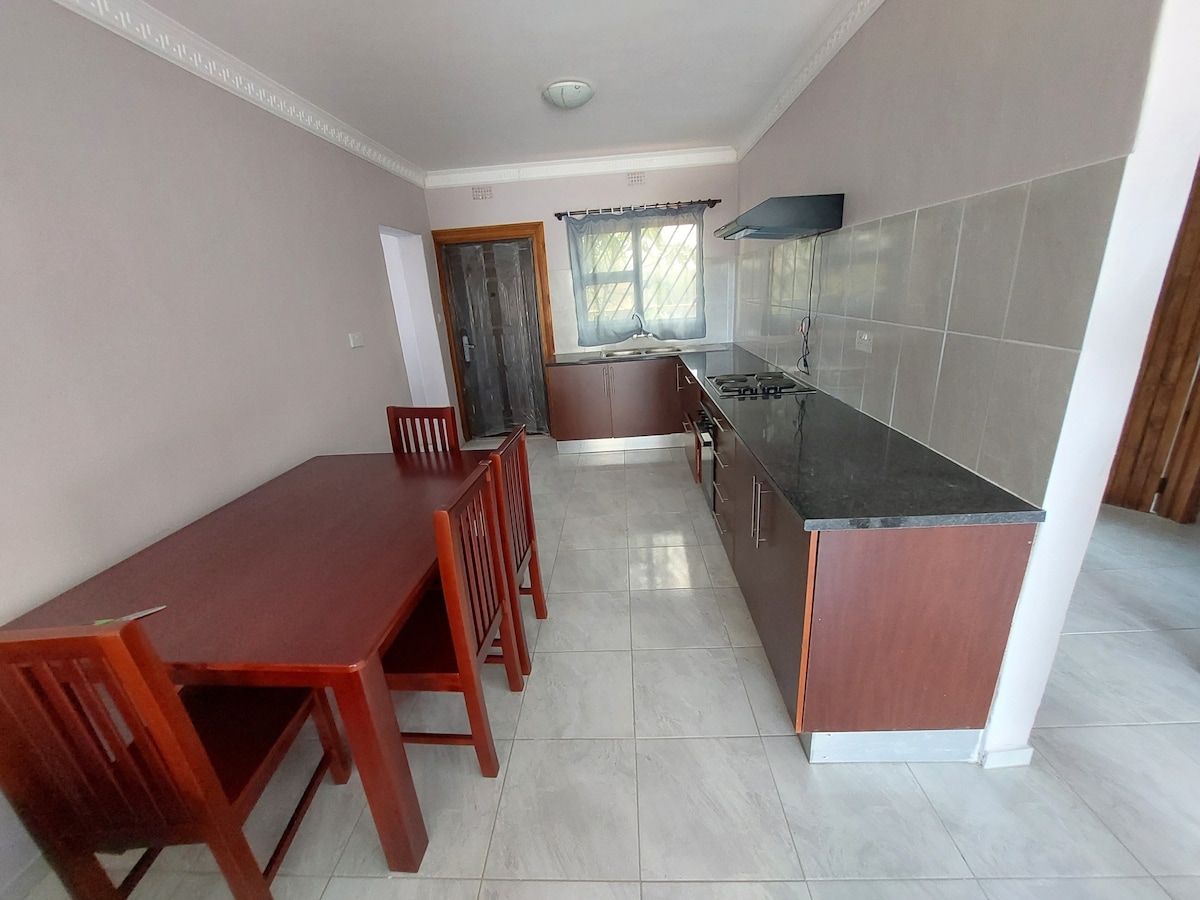 ¡La escapada perfecta en Palapye! Nuestro encantador AirBnb de 2 dormitorios se encuentra en un vecindario tranquilo y seguro, que te ofrece un hogar acogedor y elegante lejos de casa. Con su asequibilidad y un diseño atento, es la opción ideal para tu estancia en esta hermosa ciudad. Los dos dormitorios están diseñados pensando en tu comodidad. Cada habitación cuenta con camas cómodas con sábanas limpias, lo que garantiza un buen descanso. Hay tres camas en total, lo que proporciona un amplio espacio para dormir para tu grupo.
