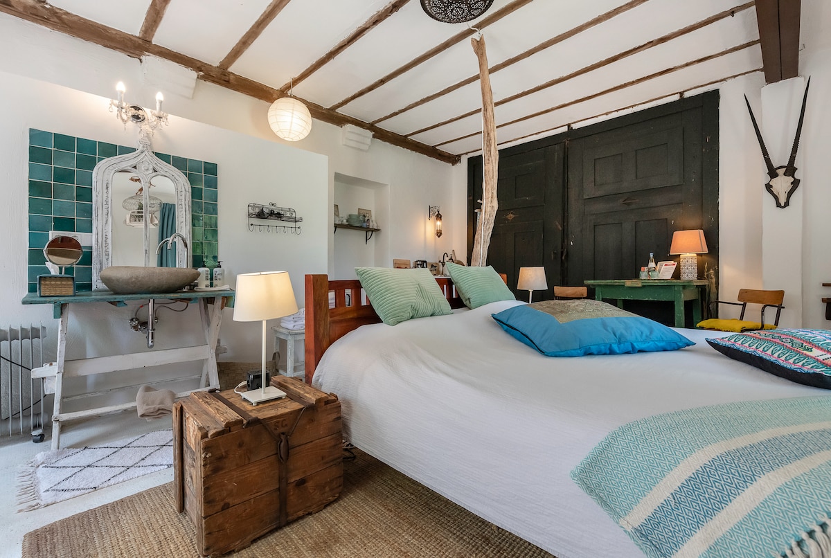 La habitación del hotel, Malbec, se encuentra en un pequeño Gasstätte, hotel boutique, en el primer piso. En el jardín, es maravilloso relajarse alrededor del fresco estanque con escaleras para nadar o por la noche junto al brasero. El restaurante sirve desayunos y, previa consulta, cenas (¡las mejores pizzas de Alemania!). Si has educado bien a tu perro, ¡puedes llevarlo contigo y luego caminar hacia los bosques infinitos!